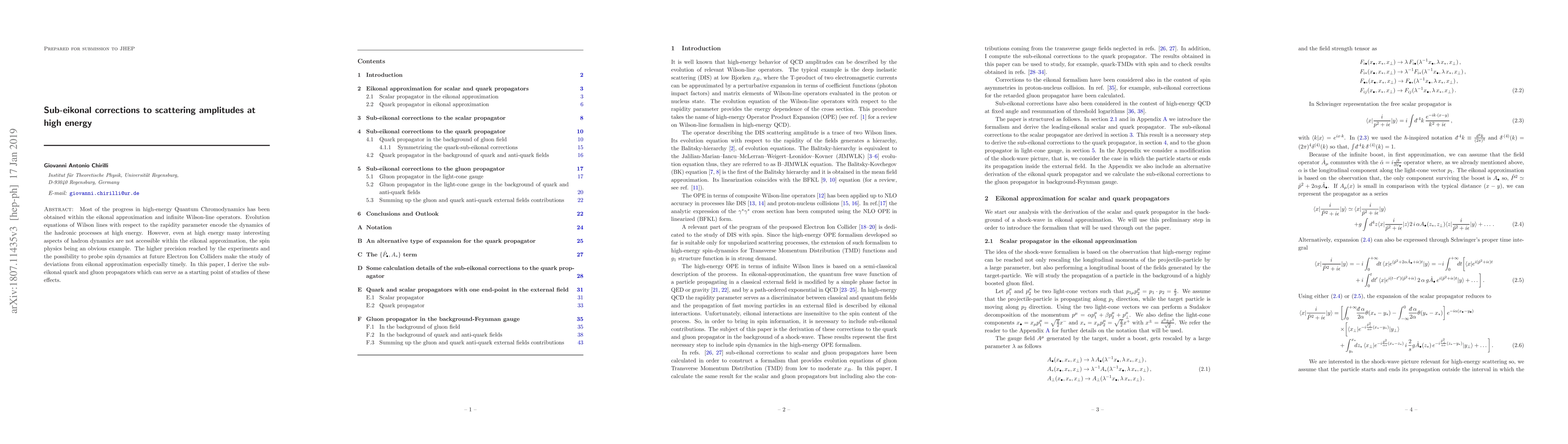 This paper derives sub-eikonal corrections to scattering amplitudes in high-energy Quantum Chromodynamics, moving beyond the eikonal approximation to explore spin dynamics and other phenomena not captured by the traditional approach. The sub-eikonal quark and gluon propagators presented provide a foundation for future studies of these effects.