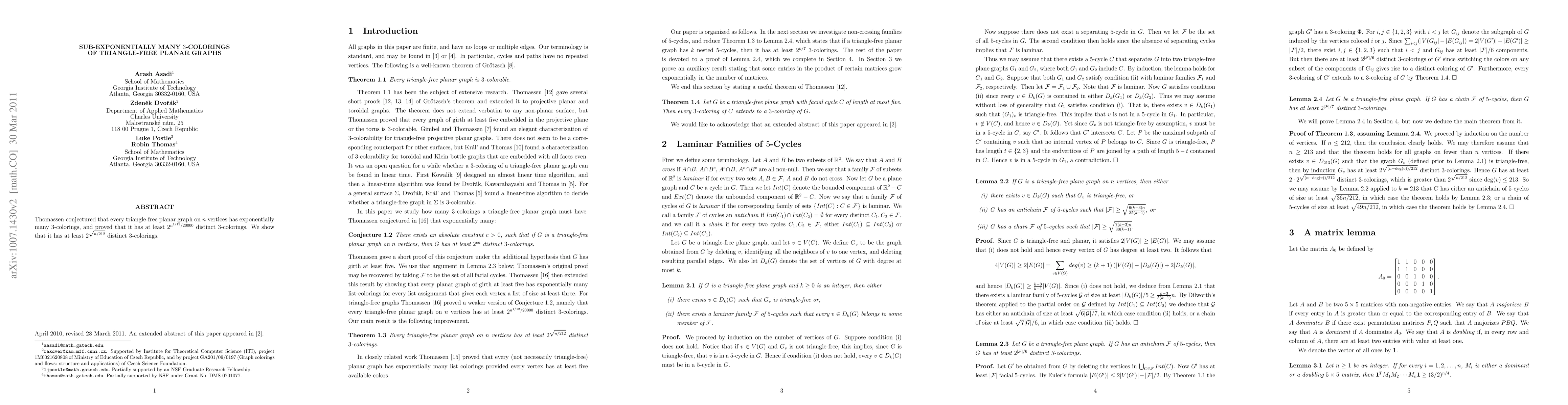 A recent research paper improves upon an existing conjecture about 3-colorings of triangle-free planar graphs, showing that such graphs have at least 2^sqrt(n/362) distinct 3-colorings.