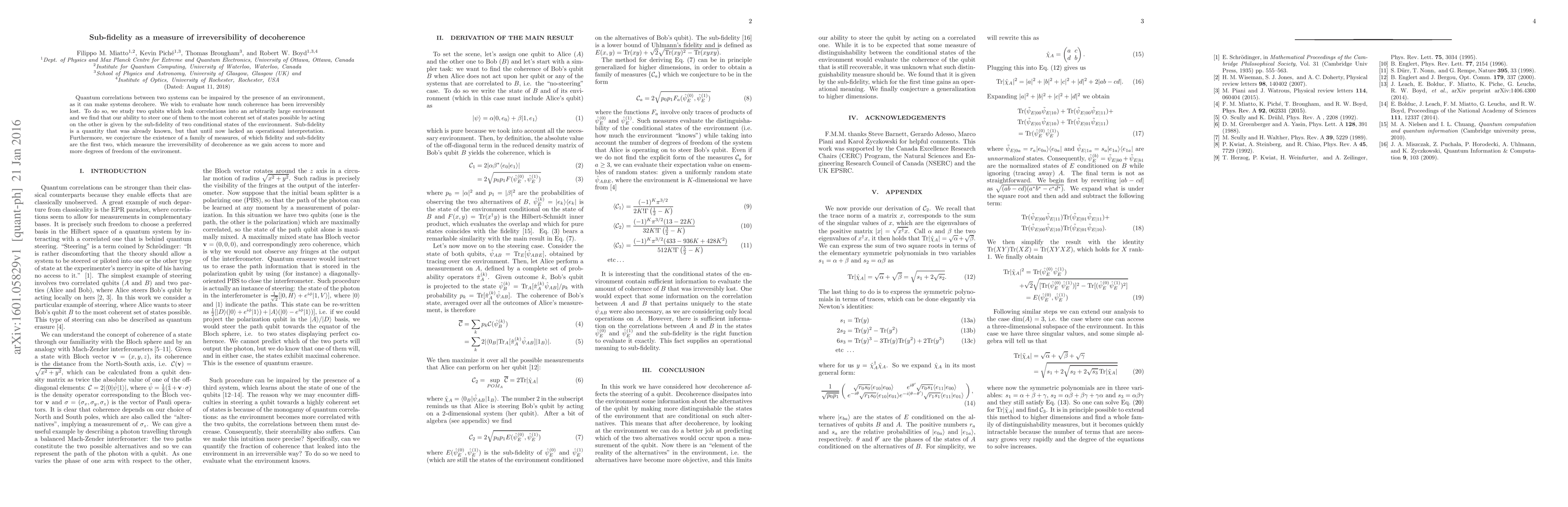 Researchers studied how decoherence affects two qubits connected to an environment and found that measuring sub-fidelity helps predict the irreversibility of decoherence, providing insight into how coherence can be regained.