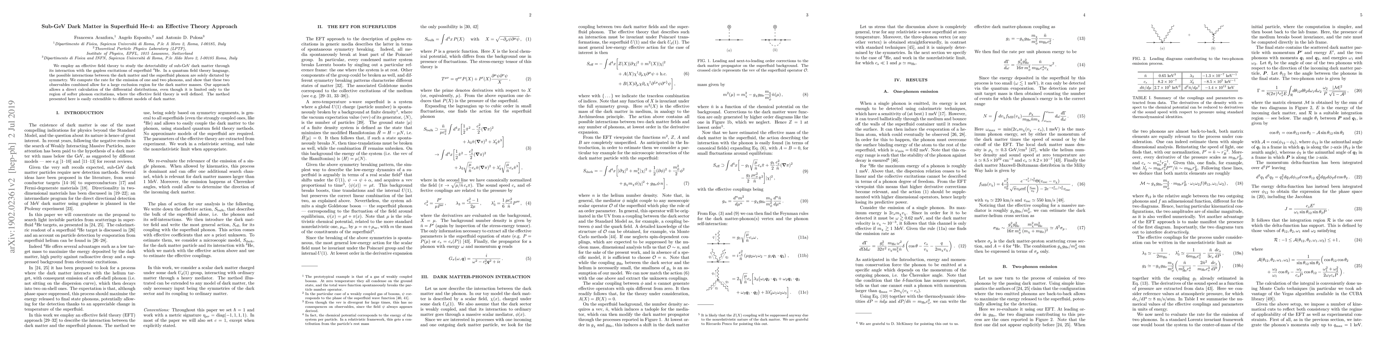 We employ an effective field theory to study the detectability of sub-GeV dark matter through its interaction with the gapless excitations of superfluid helium-4. In a quantum field theory language, the possible interactions between the dark matter and the superfluid phonon are solely dictated by symmetry. We compute the rate for the emission of one and two phonons, and show that these two observables combined allow for a large exclusion region for the dark matter masses. Our approach allows a direct calculation of the differential distributions, even though it is limited only to the region of softer phonon excitations, where the effective field theory is well defined. The method presented here is easily extendible to different models of dark matter.