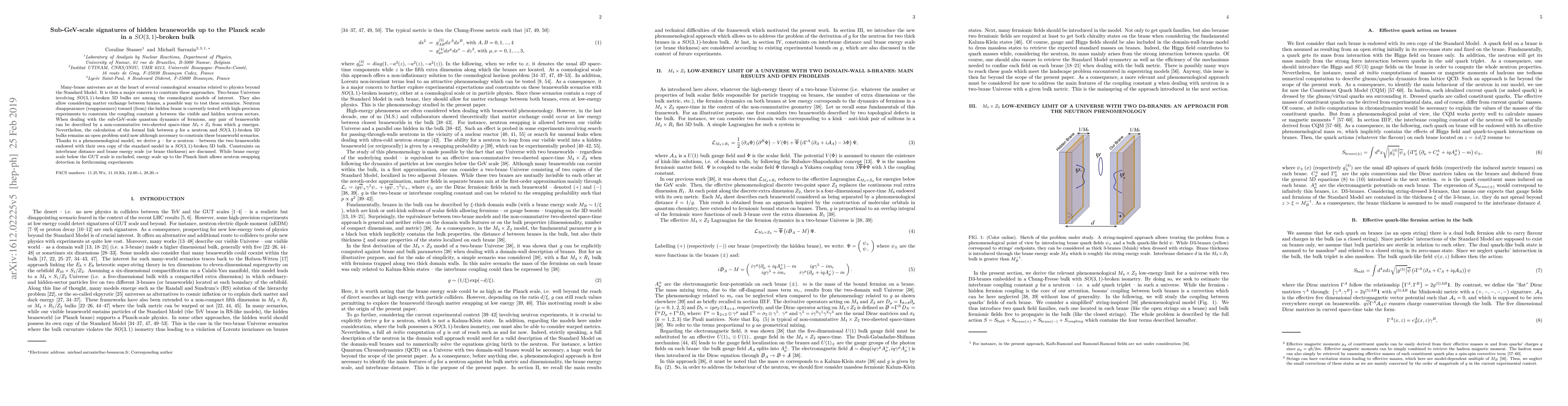 Many-brane universes are at the heart of several cosmological scenarios related to physics beyond the Standard Model. It is then a major concern to constrain these approaches. Two-brane Universes involving $SO(3,1)$-broken 5D bulks are among the cosmological models of interest. They also allow considering matter exchange between branes, a possible way to test these scenarios. Neutron disappearance (reappearance) toward (from) the hidden brane is currently tested with high-precision experiments to constrain the coupling constant $g$ between the visible and hidden neutron sectors. When dealing with the sub-GeV-scale quantum dynamics of fermions, any pair of braneworlds can be described by a non-commutative two-sheeted space-time $M_4\times Z_2$ from which $g$ emerges. Nevertheless, the calculation of the formal link between $g$ for a neutron and $SO(3,1)$-broken 5D bulks remains an open problem until now although necessary to constrain these braneworld scenarios. Thanks to a phenomenological model, we derive $g$ - for a neutron - between the two braneworlds endowed with their own copy of the standard model in a $SO(3,1)$-broken 5D bulk. Constraints on interbrane distance and brane energy scale (or brane thickness) are discussed. While brane energy scale below the GUT scale is excluded, energy scale up to the Planck limit allows neutron swapping detection in forthcoming experiments.
