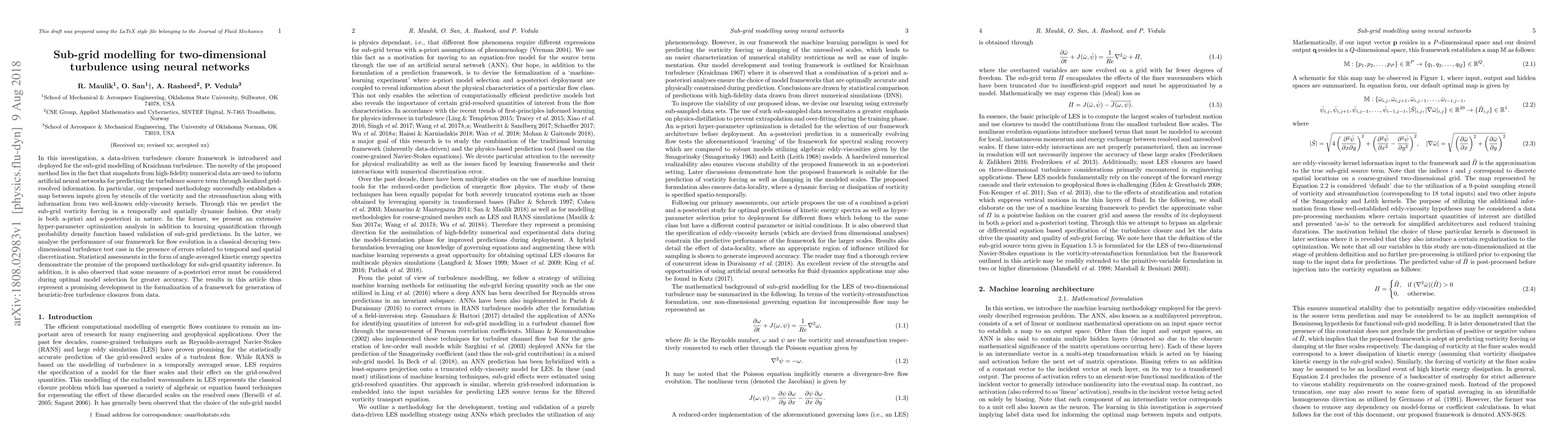 This paper introduces a data-driven turbulence closure framework using neural networks for sub-grid modelling in two-dimensional turbulence. The methodology maps vorticity and streamfunction inputs to predict sub-grid vorticity forcing, validated through statistical assessments and a-priori/a-posteriori analyses.