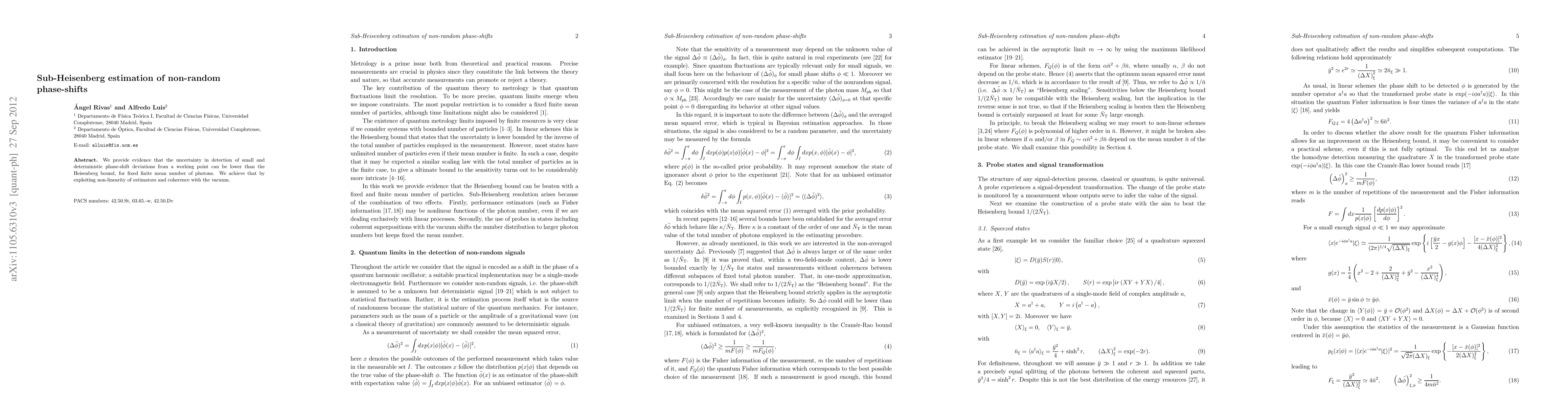 We provide evidence that the uncertainty in detection of small and deterministic phase-shift deviations from a working point can be lower than the Heisenberg bound, for fixed finite mean number of photons. We achieve that by exploiting non-linearity of estimators and coherence with the vacuum.