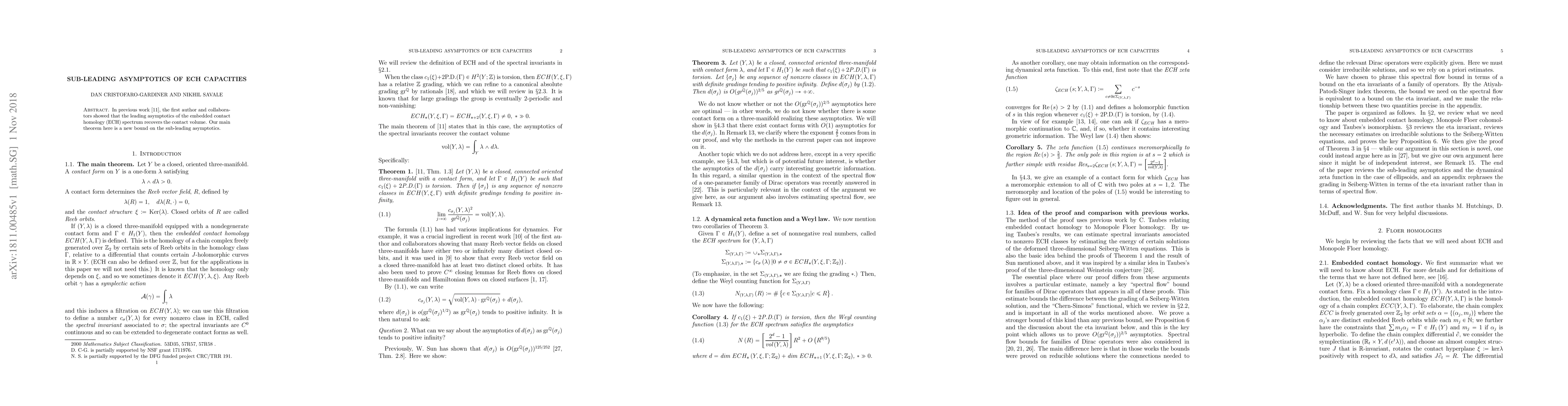 This paper provides a new bound on the sub-leading asymptotics of ECH capacities, building on previous work that established the leading asymptotics and their relation to contact volume. The result advances the understanding of the structure of ECH capacities.