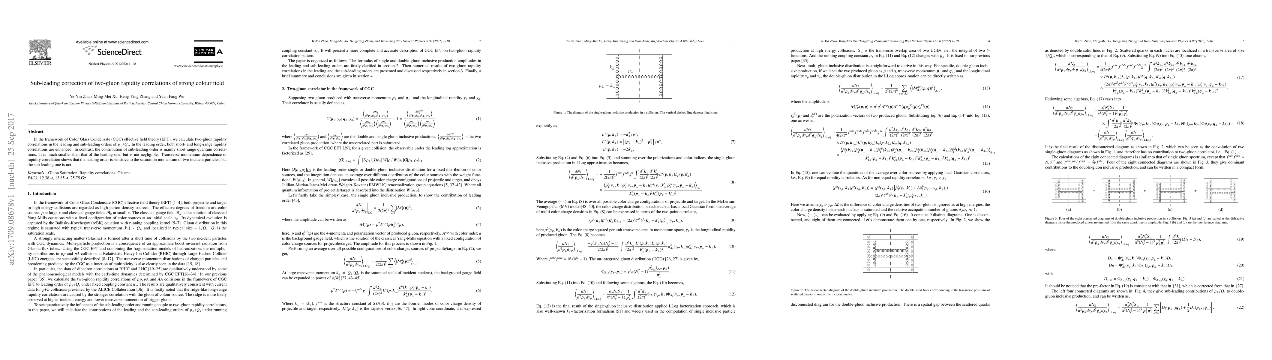 In the framework of Color Glass Condensate (CGC) effective field theory (EFT), we calculate two-gluon rapidity correlations in the leading and sub-leading orders of $p_\perp/Q_s$. In the leading order, both short- and long-range rapidity correlations are enhanced. In contrast, the contribution of sub-leading order is mainly short range quantum correlations. It is much smaller than that of the leading one, but is not negligible. Transverse momentum dependence of rapidity correlation shows that the leading order is sensitive to the saturation momentum of two incident particles, but the sub-leading one is not.