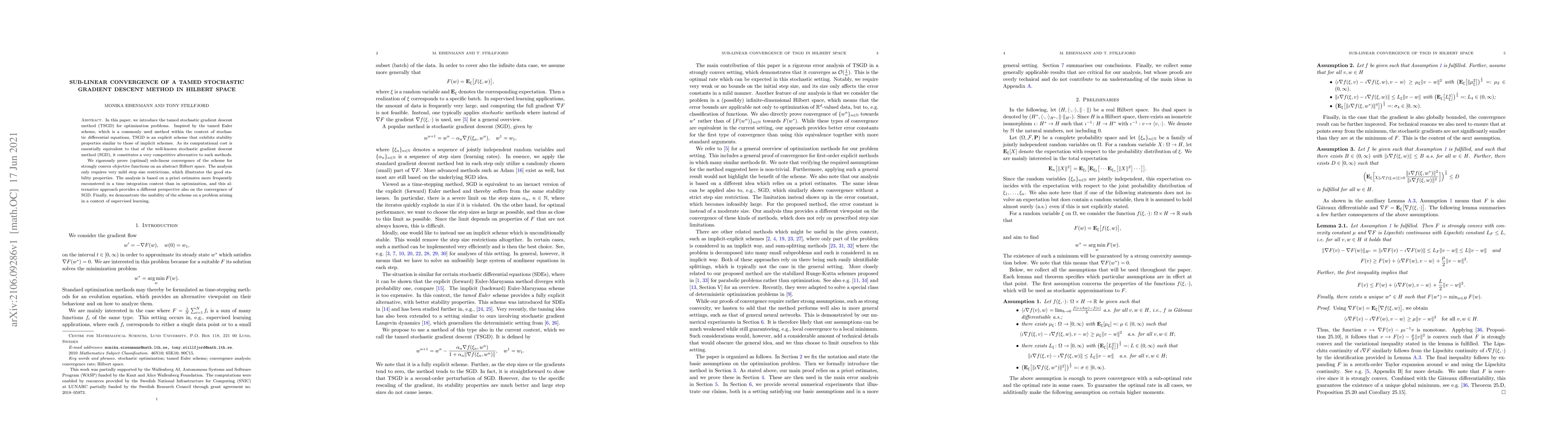 This paper introduces the tamed stochastic gradient descent method (TSGD) for optimization, showing its stability and computational efficiency comparable to SGD. It rigorously proves optimal sub-linear convergence for strongly convex functions in Hilbert space under mild step size restrictions, offering a novel perspective on SGD convergence.