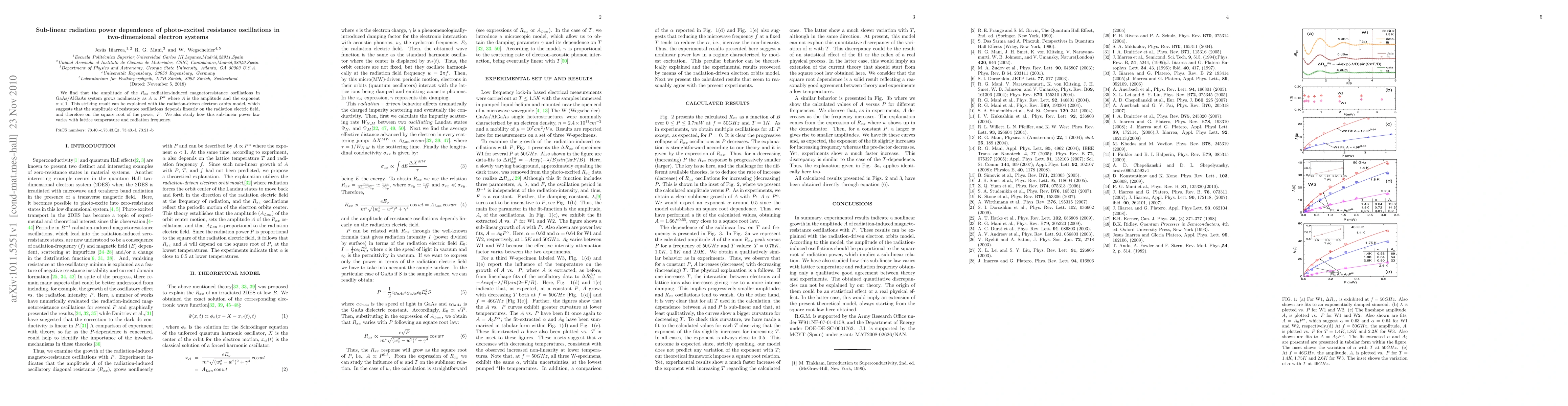 We find that the amplitude of the $R_{xx}$ radiation-induced magnetoresistance oscillations in GaAs/AlGaAs system grows nonlinearly as $A \propto P^{\alpha}$ where $A$ is the amplitude and the exponent $\alpha < 1$. %, with $\alpha \rightarrow 1/2$ in %the low temperature limit. This striking result can be explained with the radiation-driven electron orbits model, which suggests that the amplitude of resistance oscillations depends linearly on the radiation electric field, and therefore on the square root of the power, $P$. We also study how this sub-linear power law varies with lattice temperature and radiation frequency.