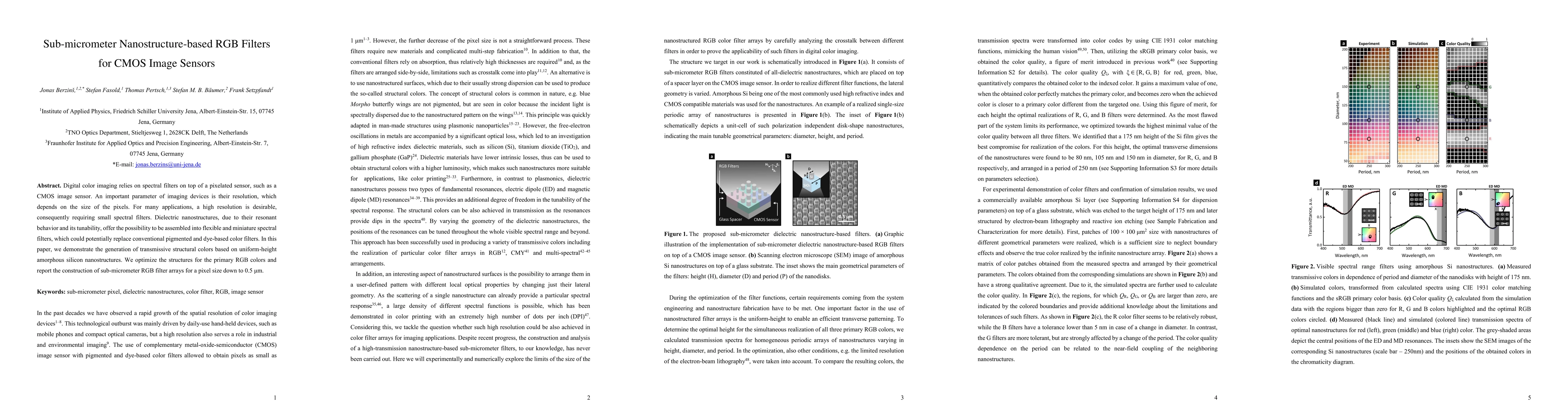 Researchers developed ultra-small RGB filters using nanostructures to enable higher-resolution digital color imaging in CMOS image sensors.
