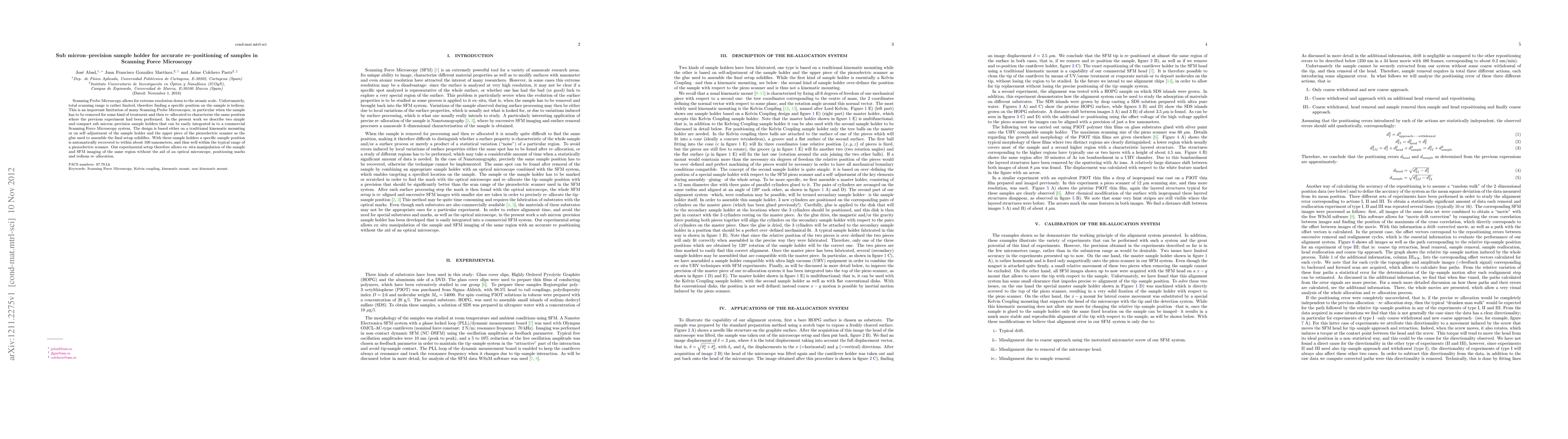 Researchers developed sub-micron precision sample holders for Scanning Force Microscopy, enabling accurate re-positioning of samples without optical microscopes or tedious re-allocation.