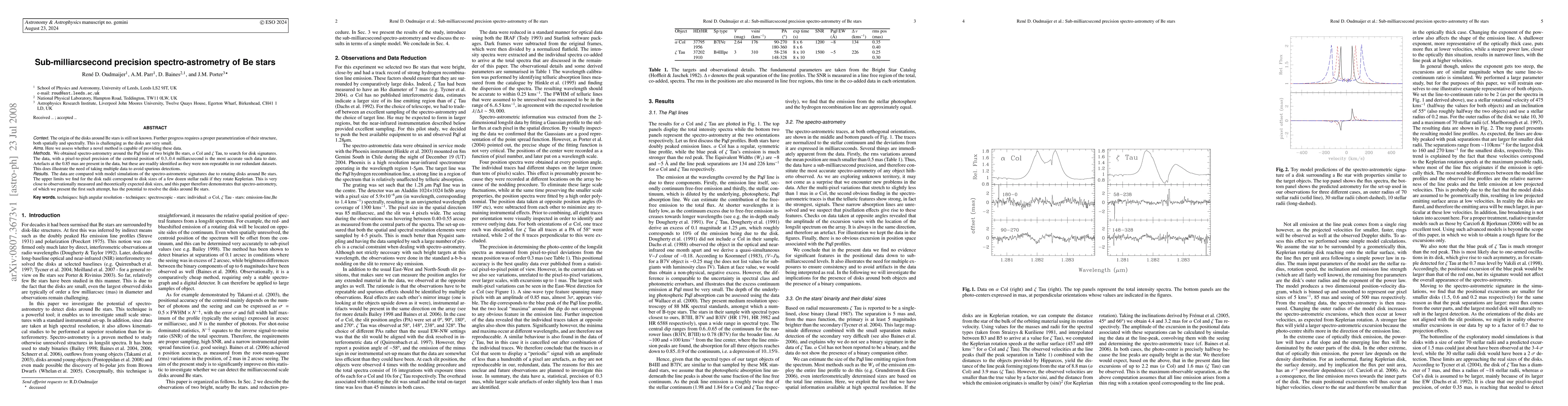The origin of the disks around Be stars is still not known. Further progress requires a proper parametrization of their structure, both spatially and kinematically. This is challenging as the disks are very small. Here we assess whether a novel method is capable of providing these data. We obtained spectro astrometry around the Pa beta line of two bright Be stars, alpha Col and zeta Tau, to search for disk signatures. The data, with a pixel to pixel precision of the centroid position of 0.3..0.4 milliarcsecond is the most accurate such data to date. Artefacts at the 0.85 mas level are present in the data, but these are readily identified as they were non-repeatable in our redundant datasets. This does illustrate the need of taking multiple data to avoid spurious detections. The data are compared with simple model simulations of the spectro astrometric signatures due to rotating disks around Be stars. The upper limits we find for the disk radii correspond to disk sizes of a few dozen stellar radii if they rotate Keplerian. This is very close to observationally measured and theoretically expected disk sizes, and this paper therefore demonstrates that spectro-astrometry, of which we present the first such attempt, has the potential to resolve the disks around Be stars.