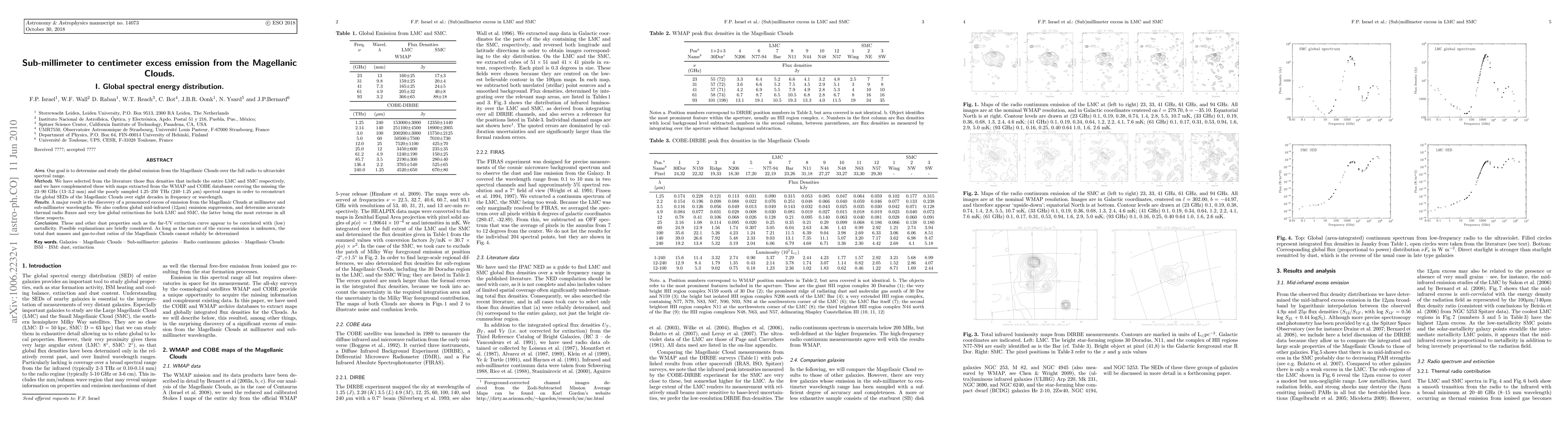 In order to reconstruct the global SEDs of the Magellanic Clouds over eight decades in spectral range, we combined literature flux densities representing the entire LMC and SMC respectively, and complemented these with maps extracted from the WMAP and COBE databases covering the missing the 23--90 GHz (13--3.2 mm) and the poorly sampled 1.25--250 THz (240--1.25 micron). We have discovered a pronounced excess of emission from both Magellanic Clouds, but especially the SMC, at millimeter and sub-millimeter wavelengths. We also determined accurate thermal radio fluxes and very low global extinctions for both LMC and SMC. Possible explanations are briefly considered but as long as the nature of the excess emission is unknown, the total dust masses and gas-to-dust ratios of the Magellanic Clouds cannot reliably be determined.