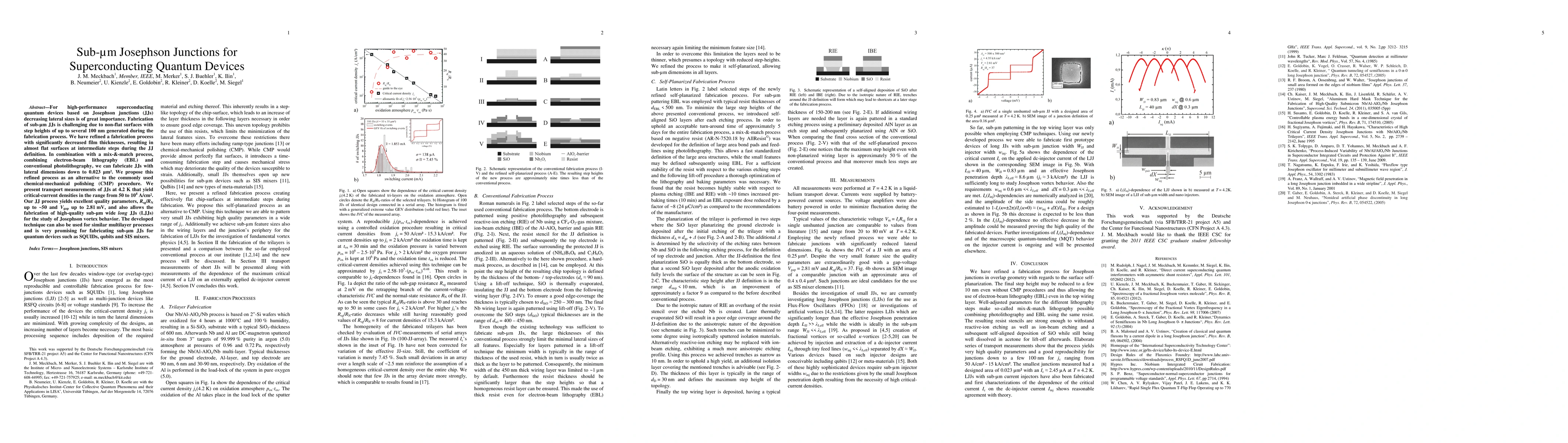 For high-performance superconducting quantum devices based on Josephson junctions (JJs) decreasing lateral sizes is of great importance. Fabrication of sub-\mu m JJs is challenging due to non-flat surfaces with step heights of up to several 100 nm generated during the fabrication process. We have refined a fabrication process with significantly decreased film thicknesses, resulting in almost flat surfaces at intermediate steps during the JJ definition. In combination with a mix-&-match process, combining electron-beam lithography (EBL) and conventional photolithography, we can fabricate JJs with lateral dimensions down to 0.023 \mu m^2. We propose this refined process as an alternative to the commonly used chemical-mechanical polishing (CMP) procedure. We present transport measurements of JJs at 4.2 K that yield critical-current densities in the range from 50 to 10^4 A/cm^2. Our JJ process yields excellent quality parameters, Rsg/Rn up to ~50 and Vgap up to 2.81 mV, and also allows the fabrication of high-quality sub-\mu m wide long JJs (LJJs) for the study of Josephson vortex behavior. The developed technique can also be used for similar multilayer processes and is very promising for fabricating sub-\mu m JJs for quantum devices such as SQUIDs, qubits and SIS mixers.