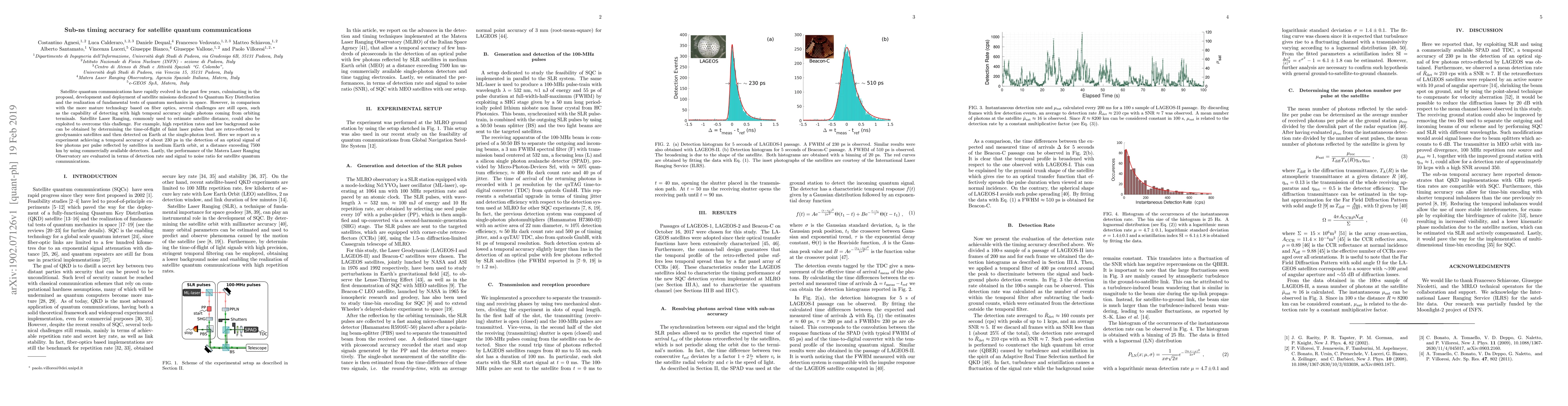 This paper reports an experiment achieving sub-nanosecond timing accuracy for detecting single photons from satellites in medium Earth orbit, utilizing satellite laser ranging and commercially available detectors. The study evaluates the performance of the Matera Laser Ranging Observatory in terms of detection rate and signal-to-noise ratio for satellite quantum communications.