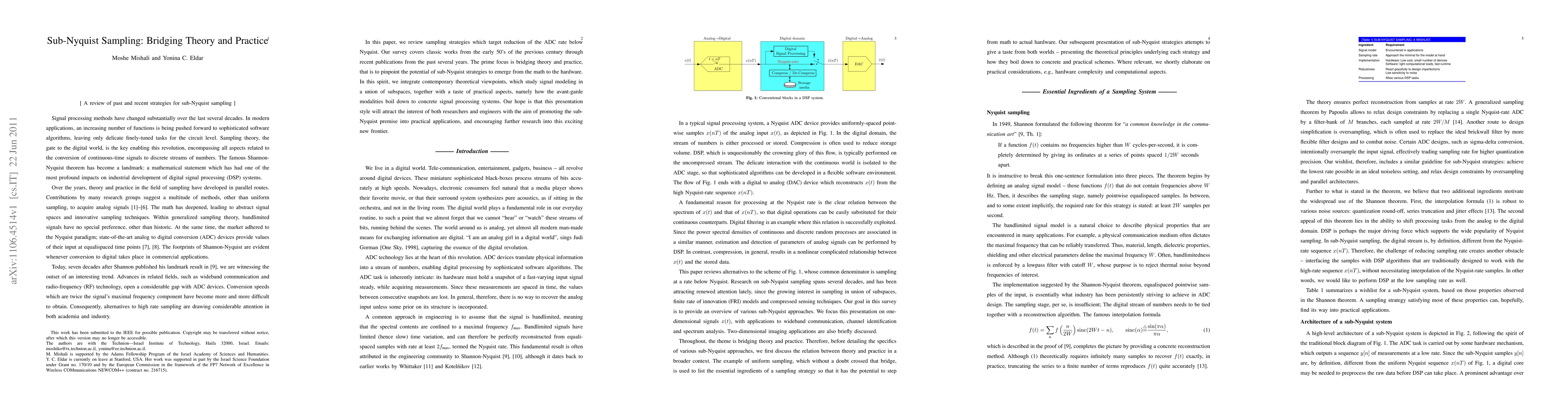 This paper reviews sampling strategies for reducing ADC rates below Nyquist, bridging theoretical advancements and practical implementations. It aims to promote the sub-Nyquist premise in hardware applications by integrating modern theoretical models with practical signal processing systems.