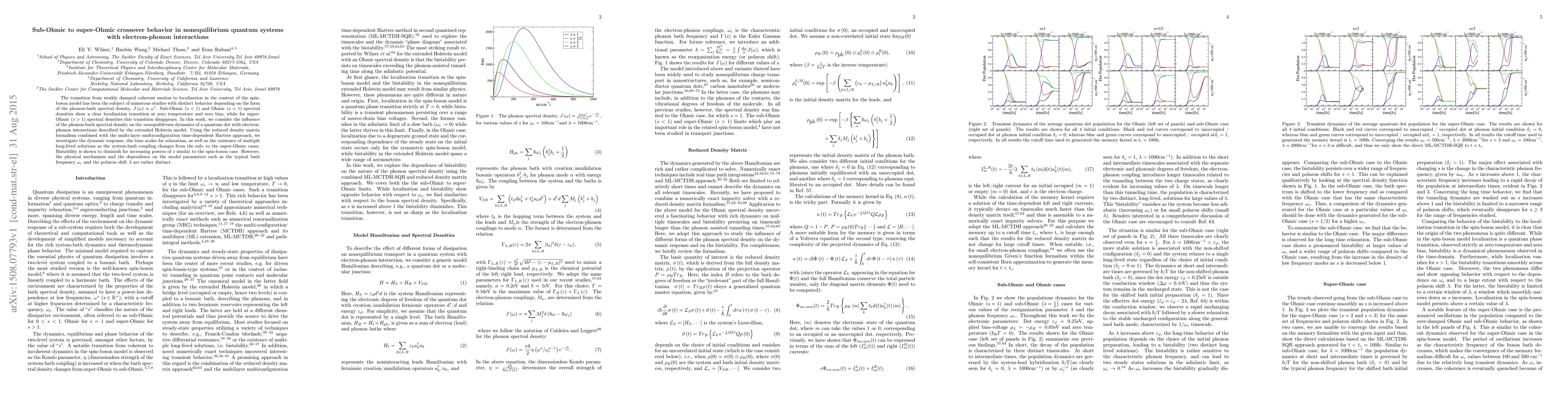 This paper investigates the crossover behavior from sub-Ohmic to super-Ohmic spectral densities in nonequilibrium quantum systems with electron-phonon interactions, using the extended Holstein model and multi-layer multiconfiguration time-dependent Hartree approach. It finds that while bistability diminishes with increasing spectral density power, the underlying physical mechanisms differ from those in the spin-boson model.
