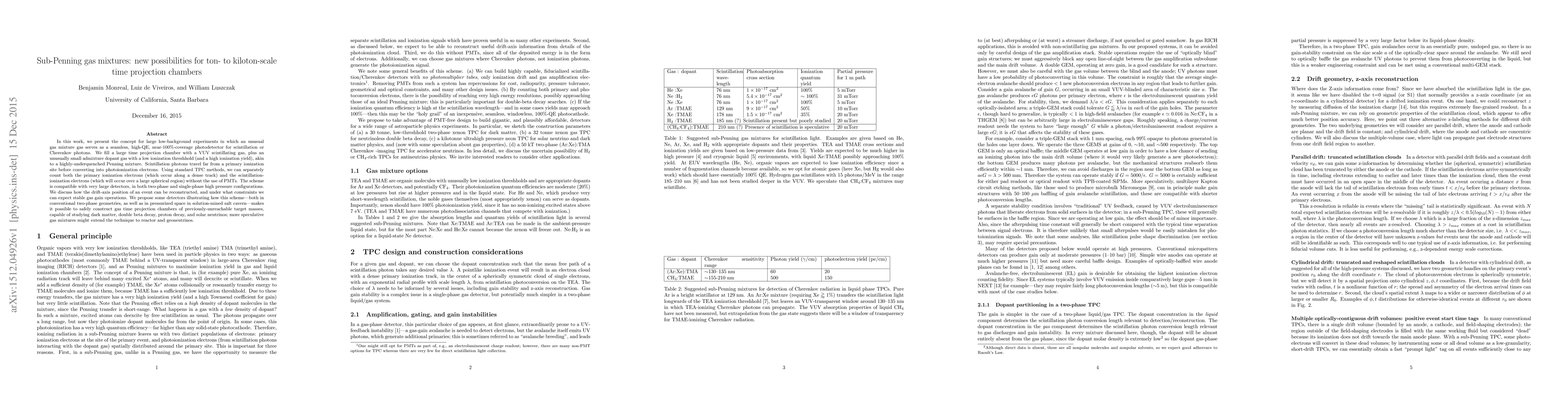 Researchers propose a new gas mixture for large time projection chambers that can detect scintillation photons without PMTs, enabling the study of dark matter and other phenomena in massive detectors.