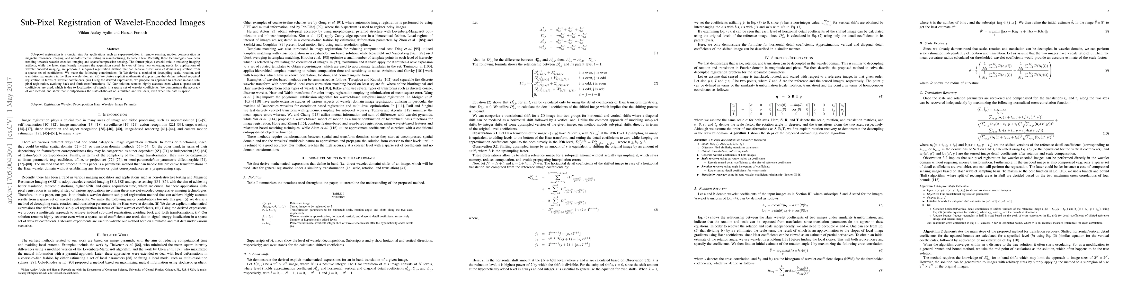 Researchers developed a sub-pixel registration method for wavelet-encoded images, achieving accurate registration even with sparse sets of coefficients, outperforming state-of-the-art methods on simulated and real data.