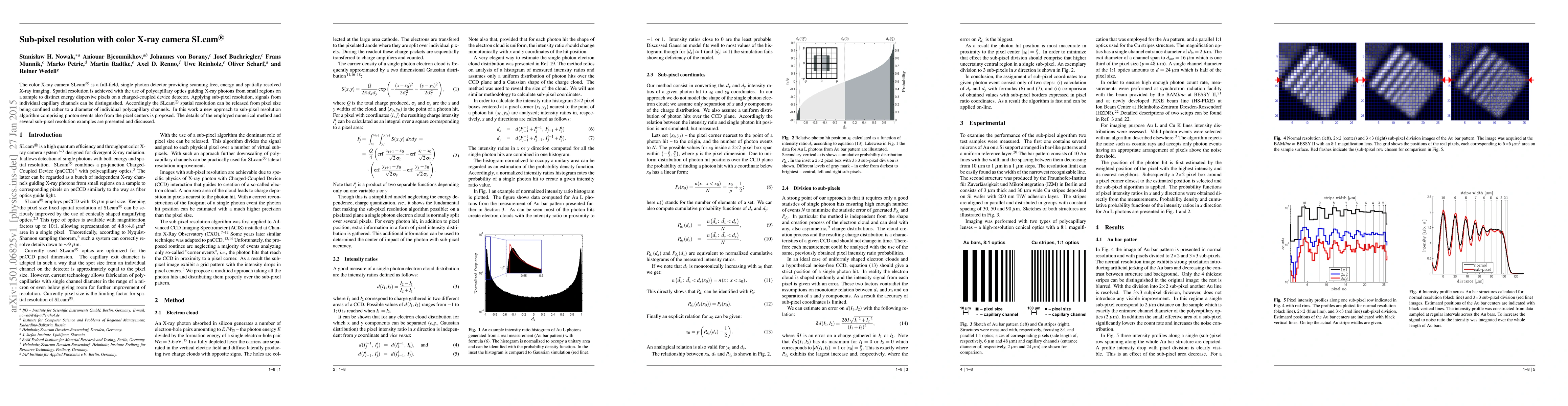 The SLcam(R) color X-ray camera utilizes polycapillary optics and sub-pixel resolution to achieve high spatial resolution in X-ray imaging, surpassing the limitations of pixel size. This paper introduces a novel sub-pixel resolution algorithm that enhances imaging by incorporating photon events from pixel centers, demonstrating improved resolution through numerical methods.