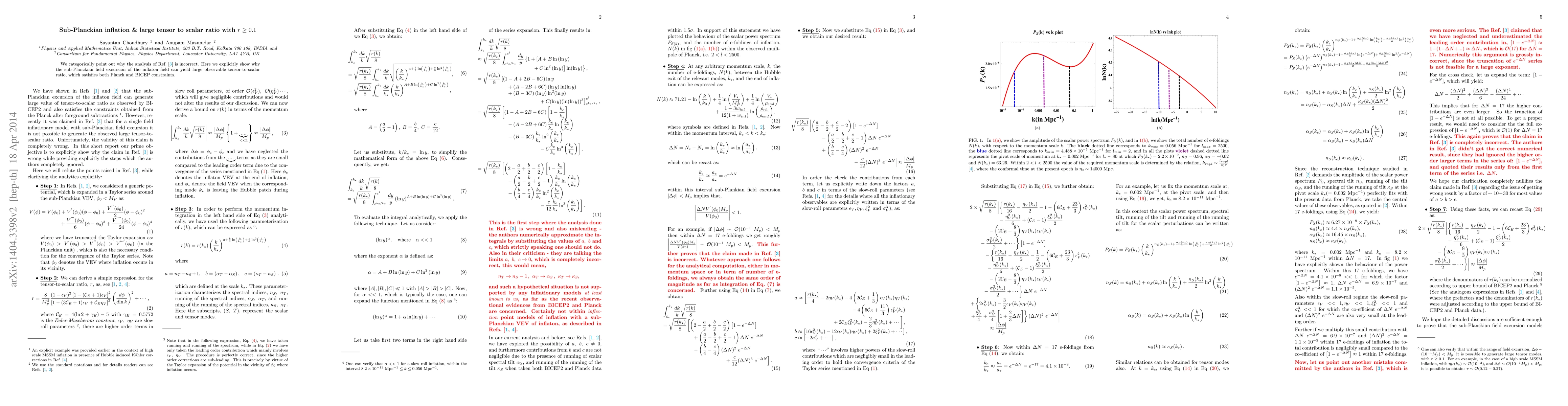We categorically point out why the analysis of arXiv:1404.1821 [hep-ph] is incorrect. Here we explicitly show why the sub-Planckian field excursion of the inflaton field can yield large observable tensor-to-scalar ratio, which satisfies both Planck and BICEP constraints.