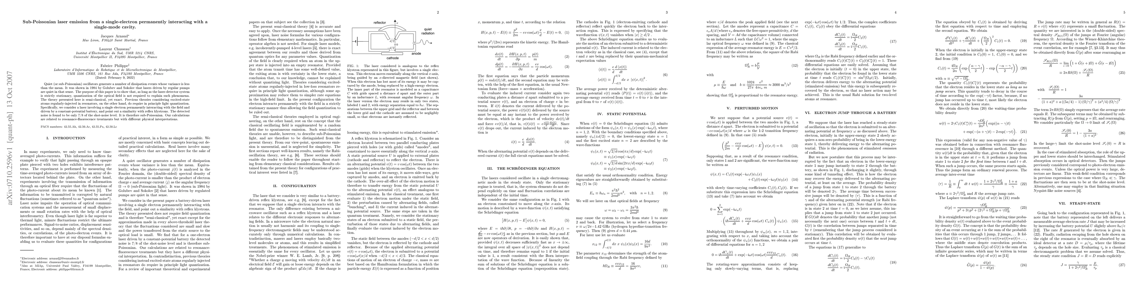 Researchers demonstrate that sub-Poissonian laser emission can occur without light quantization in a semi-classical model of a single-electron interacting with a cavity, achieving a noise level 7/8 below the shot-noise level.