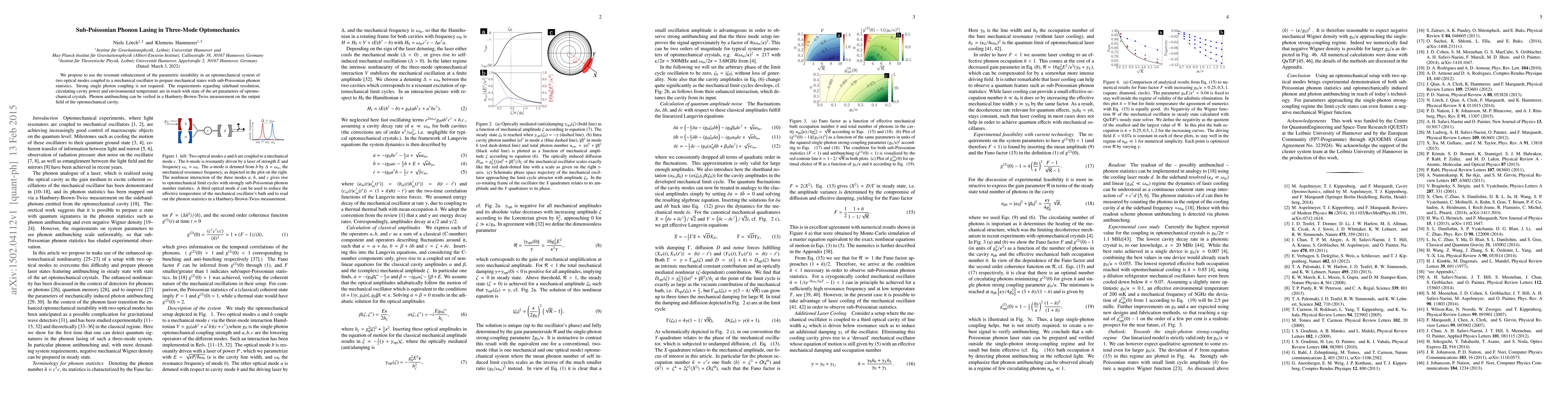 This paper proposes a method to achieve sub-Poissonian phonon statistics in an optomechanical system through resonant parametric instability enhancement without requiring strong single photon coupling. The approach is feasible with current optomechanical crystal technology and can be verified via Hanbury-Brown-Twiss measurements.