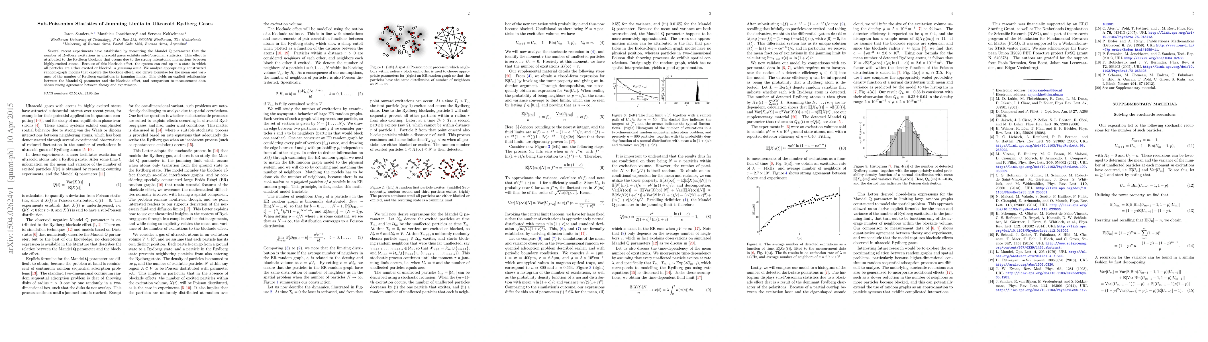 This paper investigates sub-Poissonian statistics in ultracold Rydberg gases, attributing the effect to Rydberg blockade due to strong interatomic interactions. The study uses random-graph models to derive mean and variance of Rydberg excitations, showing strong agreement between theoretical predictions and experimental measurements.