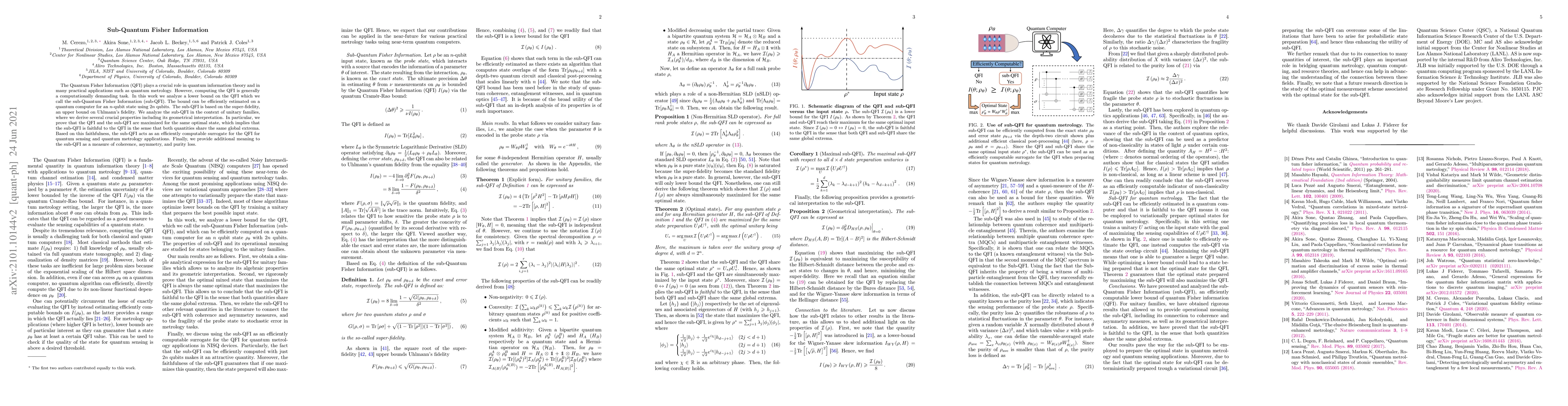The Quantum Fisher Information (QFI) plays a crucial role in quantum information theory and in many practical applications such as quantum metrology. However, computing the QFI is generally a computationally demanding task. In this work we analyze a lower bound on the QFI which we call the sub-Quantum Fisher Information (sub-QFI). The bound can be efficiently estimated on a quantum computer for an $n$-qubit state using $2n$ qubits. The sub-QFI is based on the super-fidelity, an upper bound on Uhlmann's fidelity. We analyze the sub-QFI in the context of unitary families, where we derive several crucial properties including its geometrical interpretation. In particular, we prove that the QFI and the sub-QFI are maximized for the same optimal state, which implies that the sub-QFI is faithful to the QFI in the sense that both quantities share the same global extrema. Based on this faithfulness, the sub-QFI acts as an efficiently computable surrogate for the QFI for quantum sensing and quantum metrology applications. Finally, we provide additional meaning to the sub-QFI as a measure of coherence, asymmetry, and purity loss.