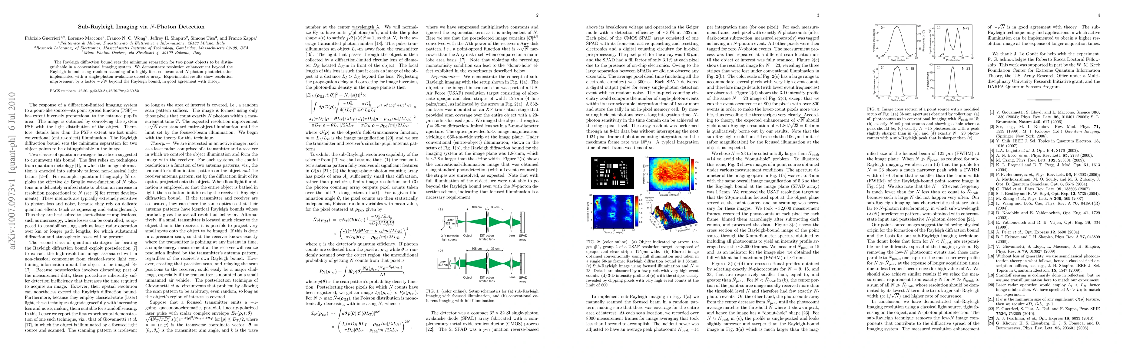 This paper demonstrates sub-Rayleigh imaging through N-photon detection, achieving resolution enhancement via random beam scanning and a single-photon detector array, showing an improvement factor of ~sqrt(N) in accordance with theoretical predictions.