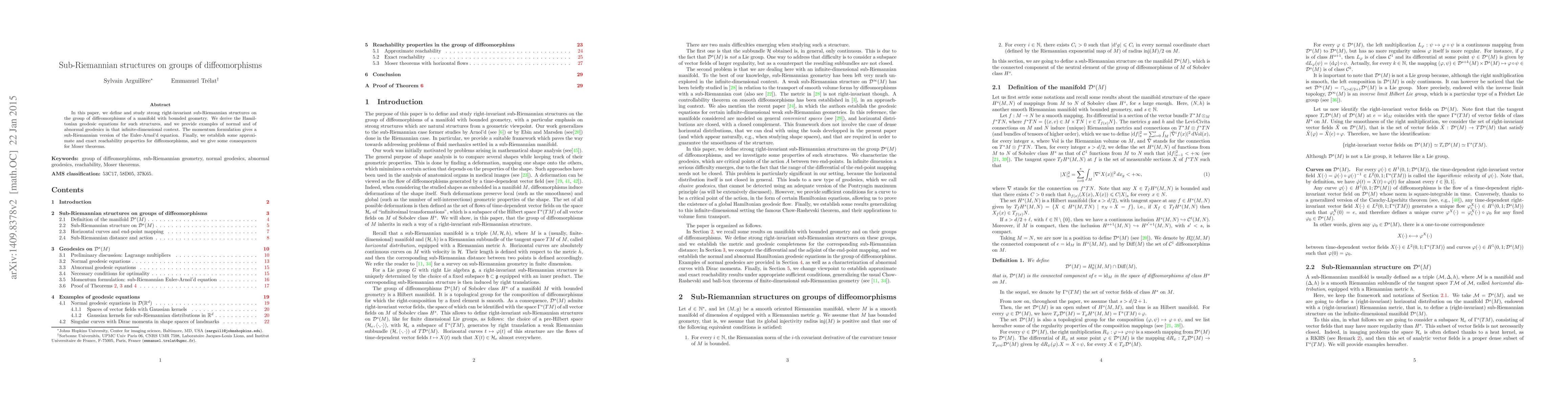 This paper defines and explores strong right-invariant sub-Riemannian structures on the group of diffeomorphisms of a manifold, deriving Hamiltonian geodesic equations and examining normal and abnormal geodesics. It also introduces a sub-Riemannian version of the Euler-Arnold equation and discusses reachability properties and implications for Moser theorems.