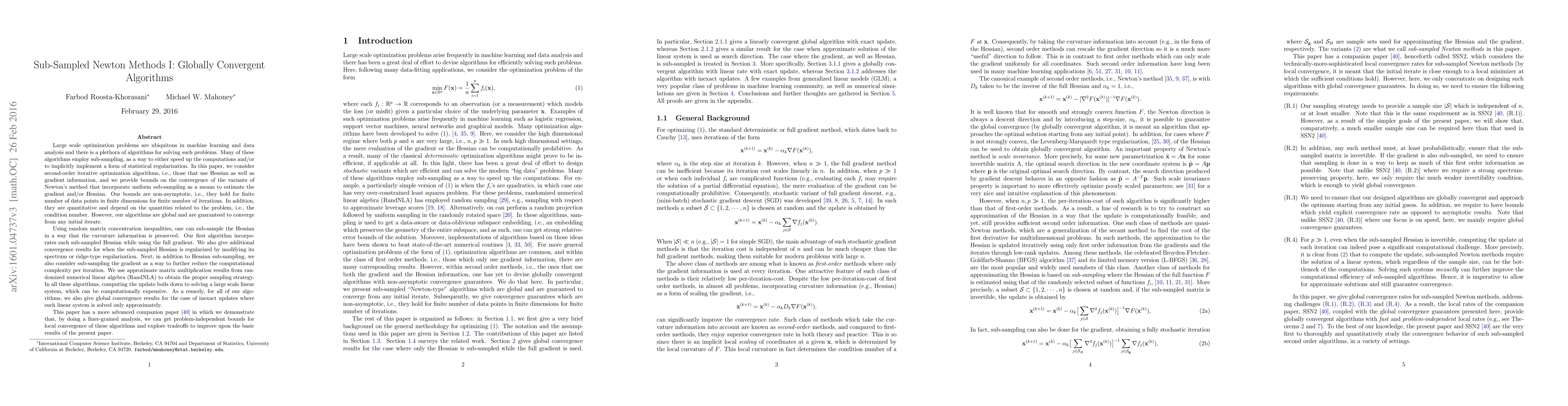 This paper develops globally convergent sub-sampled Newton methods for large-scale optimization, incorporating uniform sub-sampling to estimate the gradient and Hessian. The authors provide non-asymptotic convergence bounds and demonstrate global convergence from any initial point, using techniques from randomized numerical linear algebra to manage computational complexity.