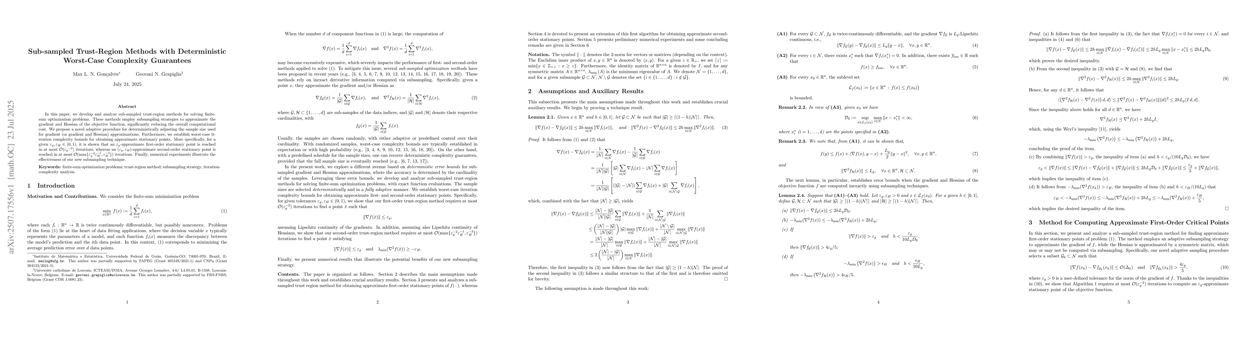 The paper develops and analyzes sub-sampled trust-region methods for solving finite-sum optimization problems, employing subsampling strategies to approximate gradients and Hessians, reducing computational costs while maintaining theoretical guarantees.
