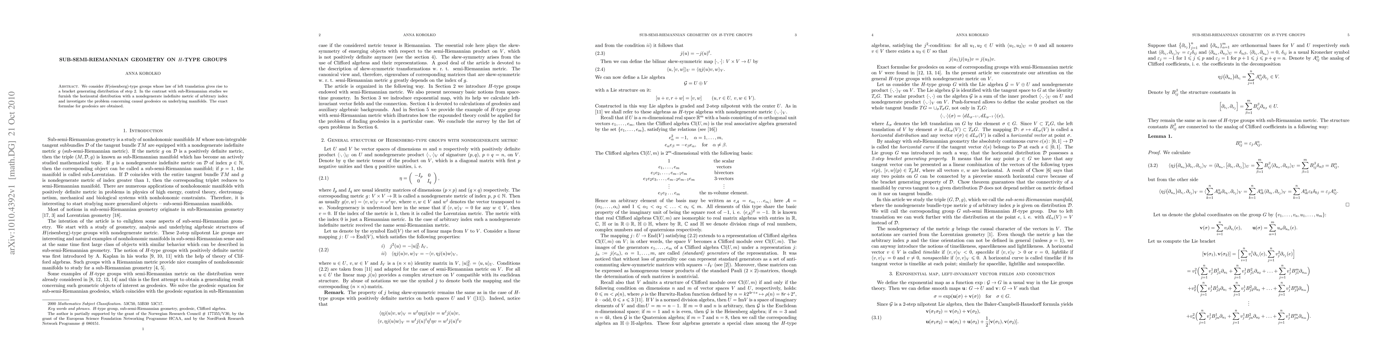 We consider $H$(eisenberg)-type groups whose law of left translation gives rise to a bracket generating distribution of step 2. In the contrast with sub-Riemannian studies we furnish the horizontal distribution with a nondegenerate indefinite metric of arbitrary index and investigate the problem concerning causal geodesics on underlying manifolds. The exact formulae for geodesics are obtained.