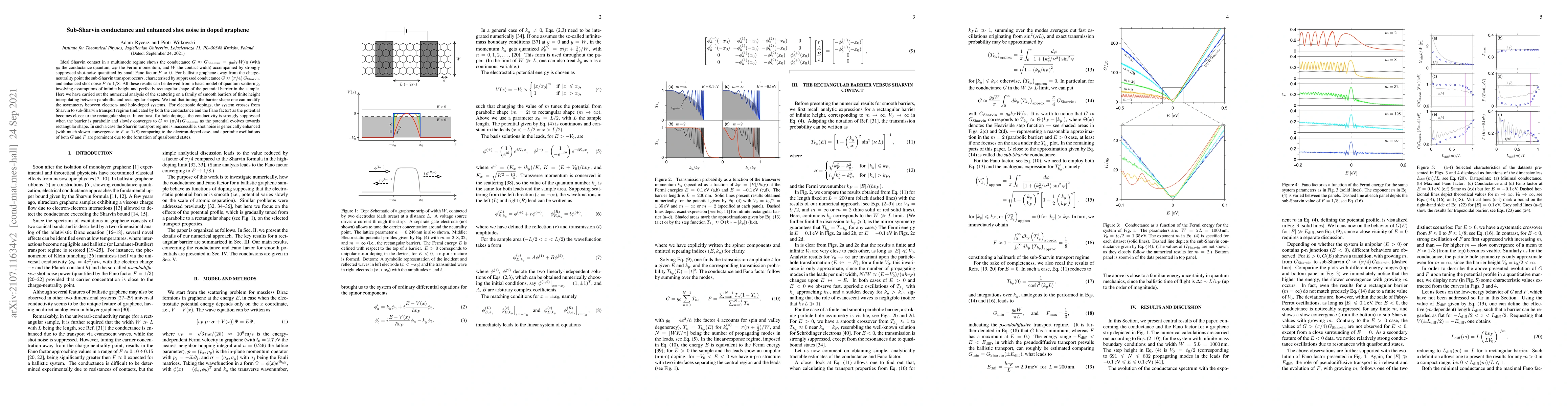 This paper investigates the transport properties of doped graphene, revealing that sub-Sharvin conductance and enhanced shot noise occur in ballistic graphene away from the charge-neutrality point. The study finds that tuning the barrier shape can modify the asymmetry between electron- and hole-doped systems, with significant implications for conductance and shot noise behavior.