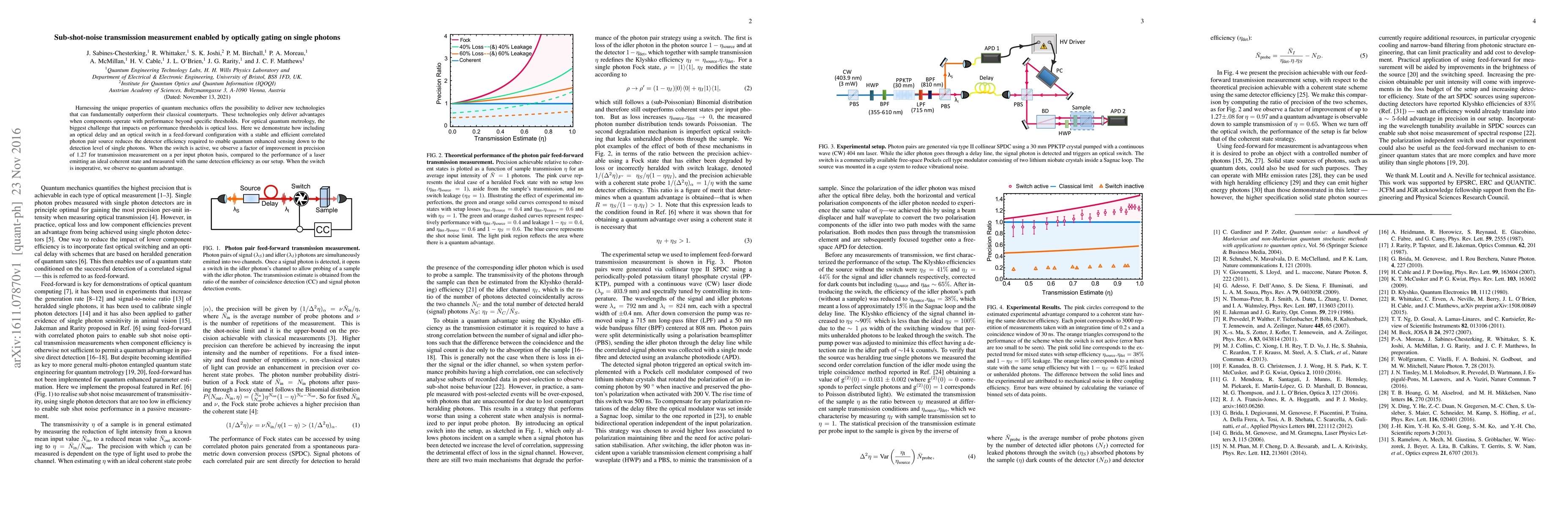 This paper demonstrates a method to achieve sub-shot-noise transmission measurement using optically gated single photons, reducing detector efficiency to single-photon detection levels. This quantum-enhanced sensing approach significantly improves measurement precision by a factor of 1.27 when an optical switch is active, showcasing a notable quantum advantage over classical coherent state measurements.