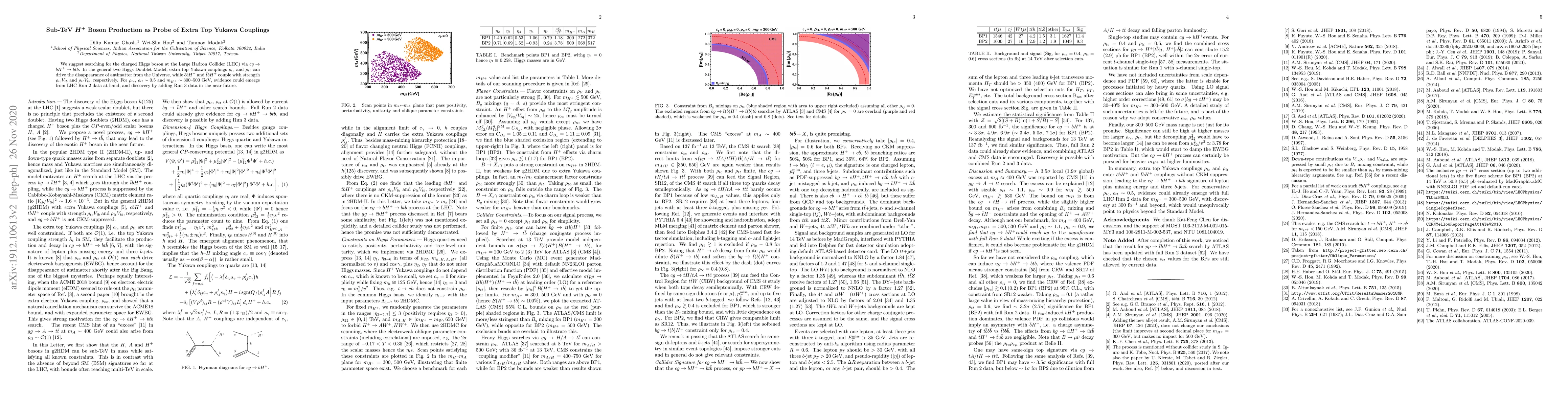 We suggest searching for the charged Higgs boson at the Large Hadron Collider (LHC) via $cg \to b H^+ \to b t \bar b$. In the general two Higgs Doublet Model, extra top Yukawa couplings $\rho_{tc}$ and $\rho_{tt}$ can drive the disappearance of antimatter from the Universe, while $\bar cbH^+$ and $\bar tbH^+$ couple with strength $\rho_{tc}V_{tb}$ and $\rho_{tt}V_{tb}$, respectively. For $\rho_{tc},\, \rho_{tt} \sim 0.5$ and $m_{H^+} \sim 300$--500 GeV, evidence could emerge from LHC Run 2 data at hand, and discovery by adding Run 3 data in the near future.
