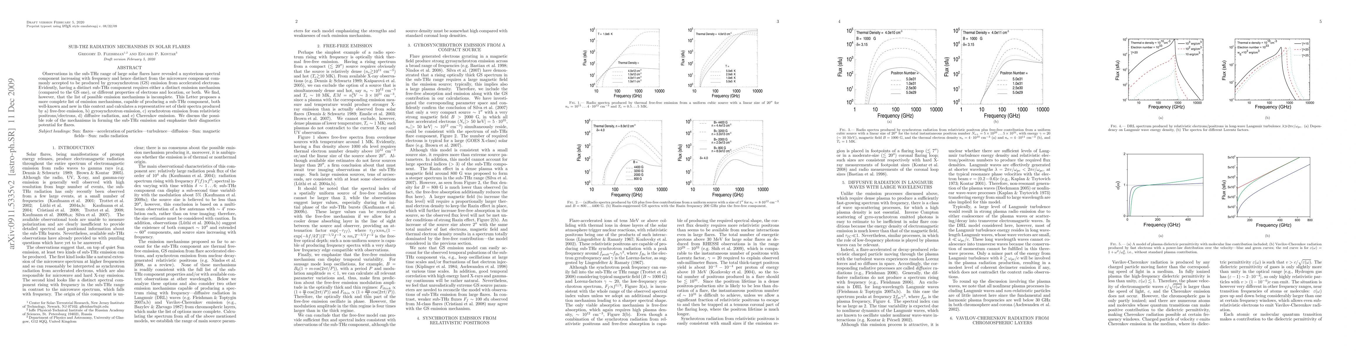 Observations in the sub-THz range of large solar flares have revealed a mysterious spectral component increasing with frequency and hence distinct from the microwave component commonly accepted to be produced by gyrosynchrotron (GS) emission from accelerated electrons. Evidently, having a distinct sub-THz component requires either a distinct emission mechanism (compared to the GS one), or different properties of electrons and location, or both. We find, however, that the list of possible emission mechanisms is incomplete. This Letter proposes a more complete list of emission mechanisms, capable of producing a sub-THz component, both well-known and new in this context and calculates a representative set of their spectra produced by a) free-free emission, b) gyrosynchrotron emission, c) synchrotron emission from relativistic positrons/electrons, d) diffusive radiation, and e) Cherenkov emission. We discuss the possible role of the mechanisms in forming the sub-THz emission and emphasize their diagnostics potential for flares.