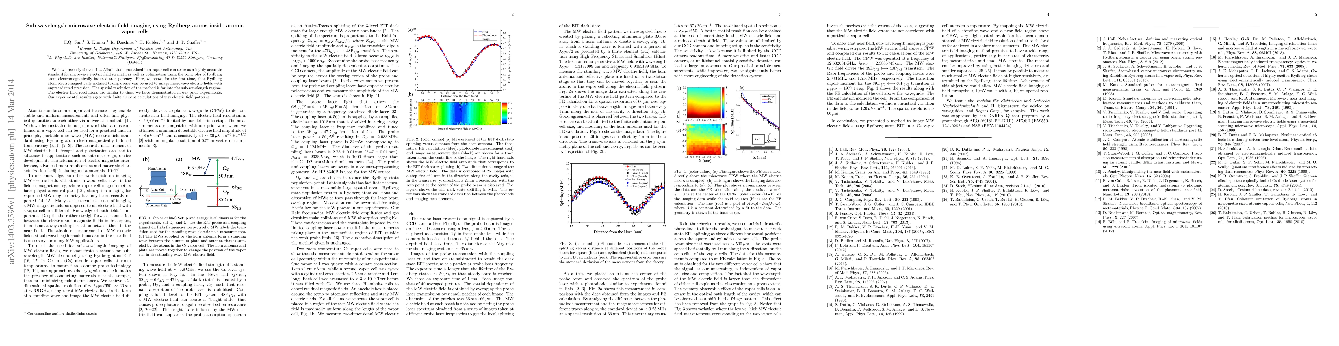 This study demonstrates a novel method for sub-wavelength resolution microwave electric field imaging using Rydberg atoms in atomic vapor cells, achieving precision comparable to prior experiments, and validated through finite element calculations. The technique leverages Rydberg atom electromagnetically induced transparency for unprecedented imaging precision.