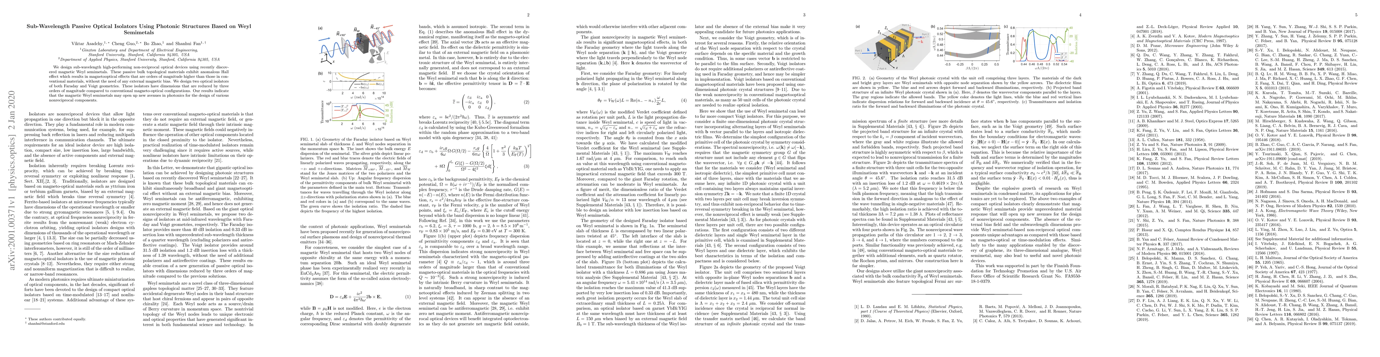 This paper designs sub-wavelength optical isolators based on Weyl semimetals, achieving non-reciprocal optical effects with orders of magnitude higher efficiency than conventional materials. The proposed isolators are three orders of magnitude smaller, potentially revolutionizing photonics with new nonreciprocal components.