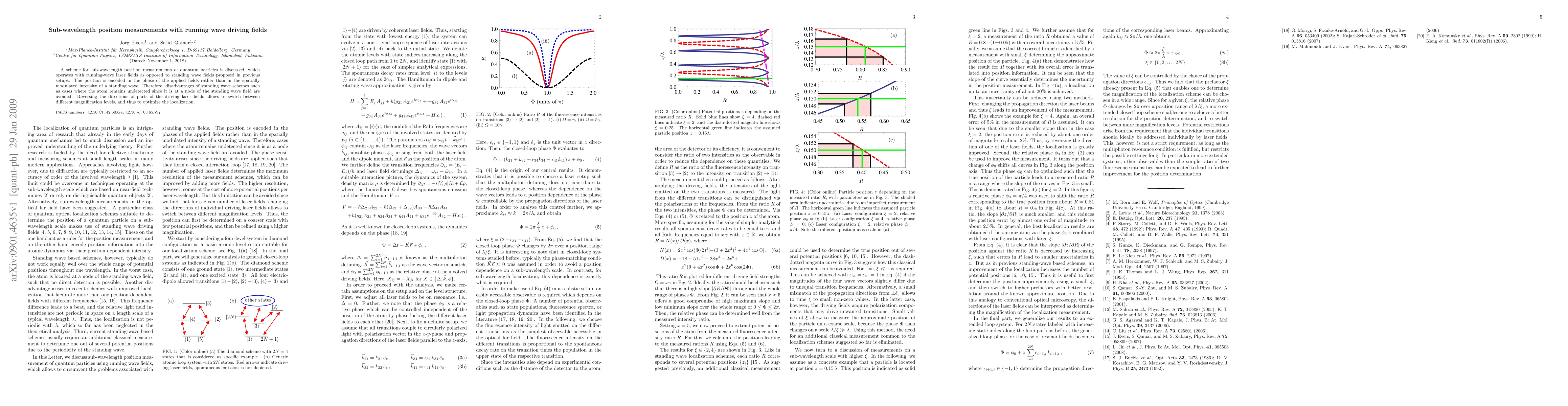This research proposes a method for sub-wavelength position measurements of quantum particles using running-wave laser fields, avoiding detection issues with standing waves. The technique optimizes localization by reversing parts of the driving fields to switch magnification levels.