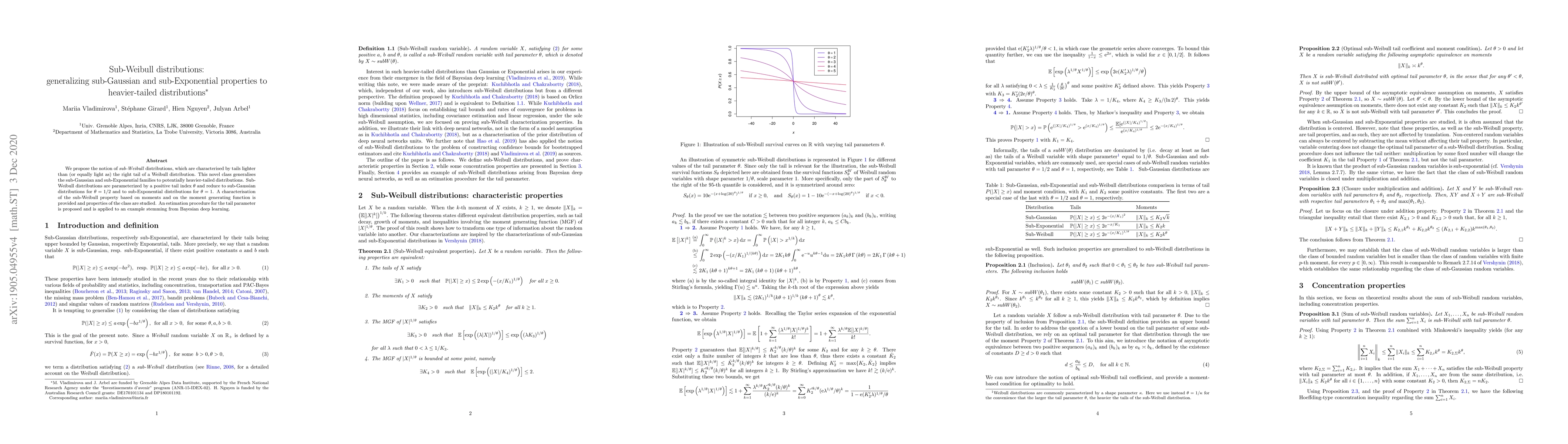 This paper introduces sub-Weibull distributions, a new class characterized by lighter-than-Weibull tails, generalizing sub-Gaussian and sub-Exponential distributions to heavier-tailed cases. An estimation method for the tail parameter is proposed and demonstrated in a Bayesian deep learning context.