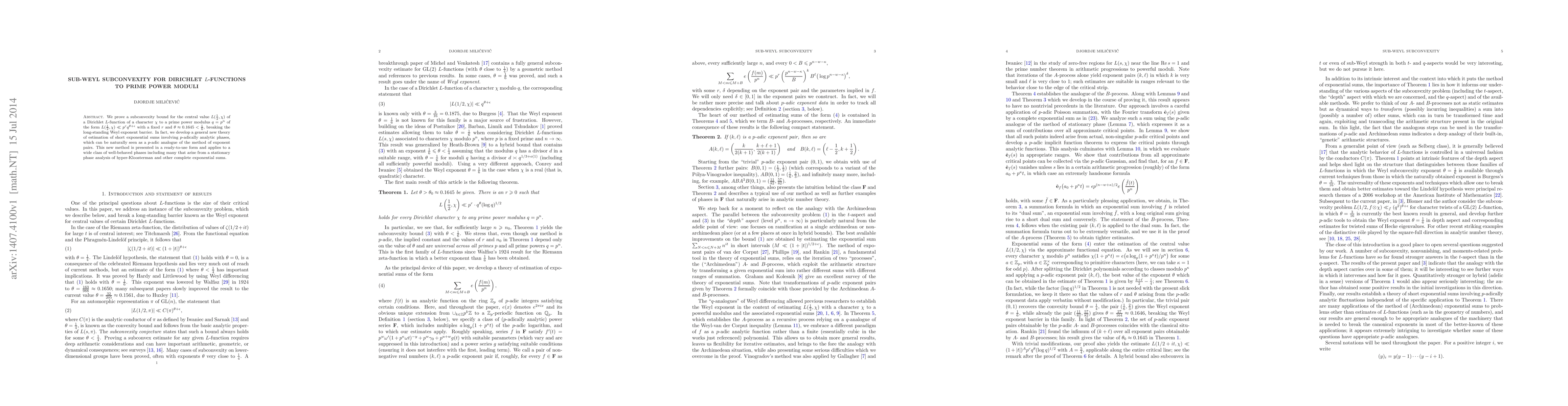 Researchers break the long-standing Weyl exponent barrier for Dirichlet L-functions by proving a subconvexity bound for a prime power modulus, providing a p-adic analogue of the method of exponent pairs.
