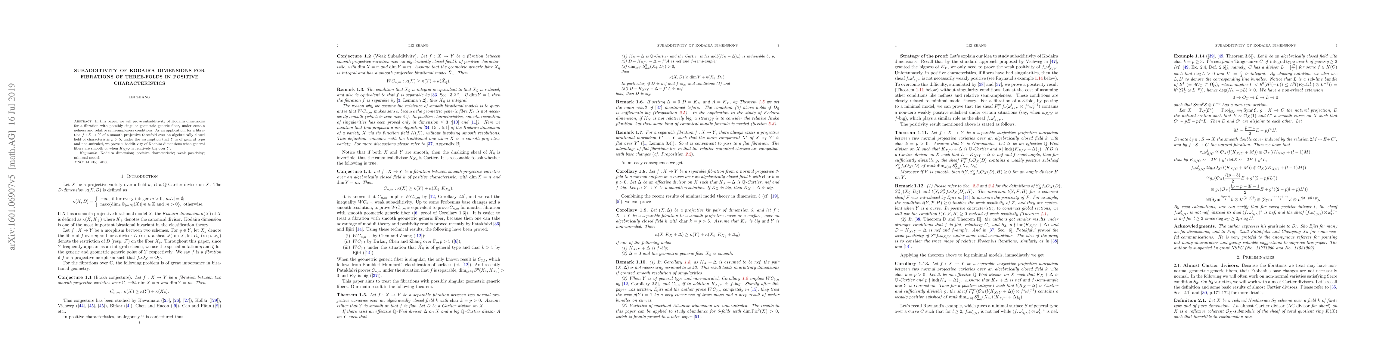 Summary: This paper establishes the subadditivity of Kodaira dimensions for fibrations of smooth projective three-folds in positive characteristics, even with singular generic fibers, under specific nefness and semi-ampleness conditions. An application proves the subadditivity of Kodaira dimensions for fibrations from a three-fold to a general type, non-uniruled base under certain smoothness assumptions.