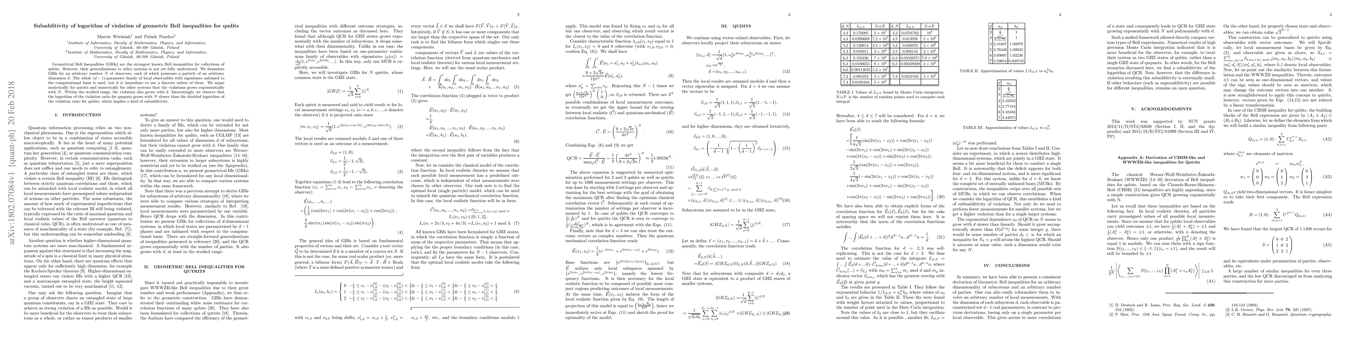 This paper investigates the violation of generalized Bell inequalities for qudits, showing that the violation grows exponentially with the number of observers and dimension. It finds a subadditive behavior in the logarithm of the violation ratio for ququats compared to qubits, indicating a slower growth rate.