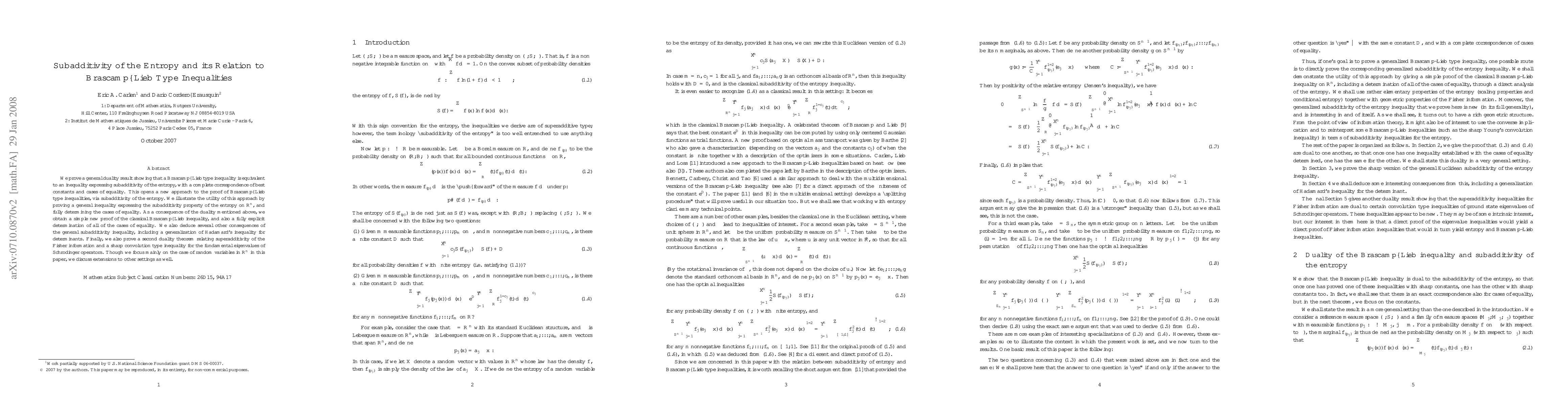 We prove a general duality result showing that a Brascamp--Lieb type inequality is equivalent to an inequality expressing subadditivity of the entropy, with a complete correspondence of best constants and cases of equality. This open a new approach to the proof of Brascamp--Lieb type inequalities, via subadditivity of the entropy. We illustrate the utility of this approach by proving a general inequality expressing the subadditivity property of the entropy on $\R^n$, and fully determining the cases of equality. As a consequence of the duality mentioned above, we obtain a simple new proof of the classical Brascamp--Lieb inequality, and also a fully explicit determination of all of the cases of equality. We also deduce several other consequences of the general subadditivity inequality, including a generalization of Hadamard's inequality for determinants. Finally, we also prove a second duality theorem relating superadditivity of the Fisher information and a sharp convolution type inequality for the fundamental eigenvalues of Schr\"odinger operators. Though we focus mainly on the case of random variables in $\R^n$ in this paper, we discuss extensions to other settings as well.