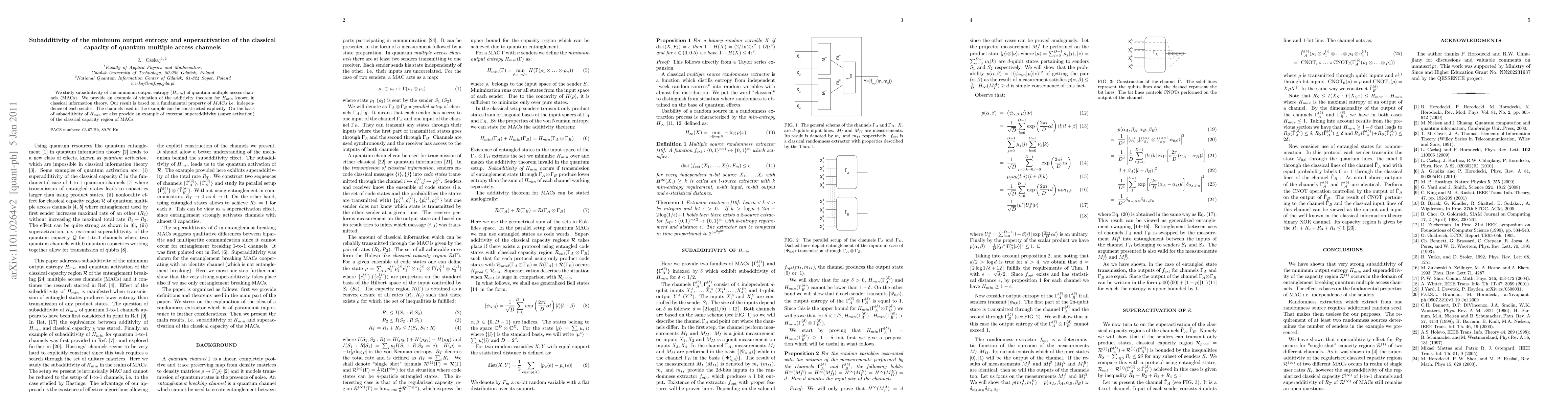 We study subadditivity of the minimum output entropy ($H_{min}$) of quantum multiple access channels (MACs). We provide an example of violation of the additivity theorem for $H_{min}$ known in classical information theory. Our result is based on a fundamental property of $MACs$ i.e. independence of each sender. The channels used in the example can be constructed explicitly. On the basis of subadditivity of $H_{min}$ we also provide an example of extremal superadditivity (super activation) of the classical capacity region of MACs.