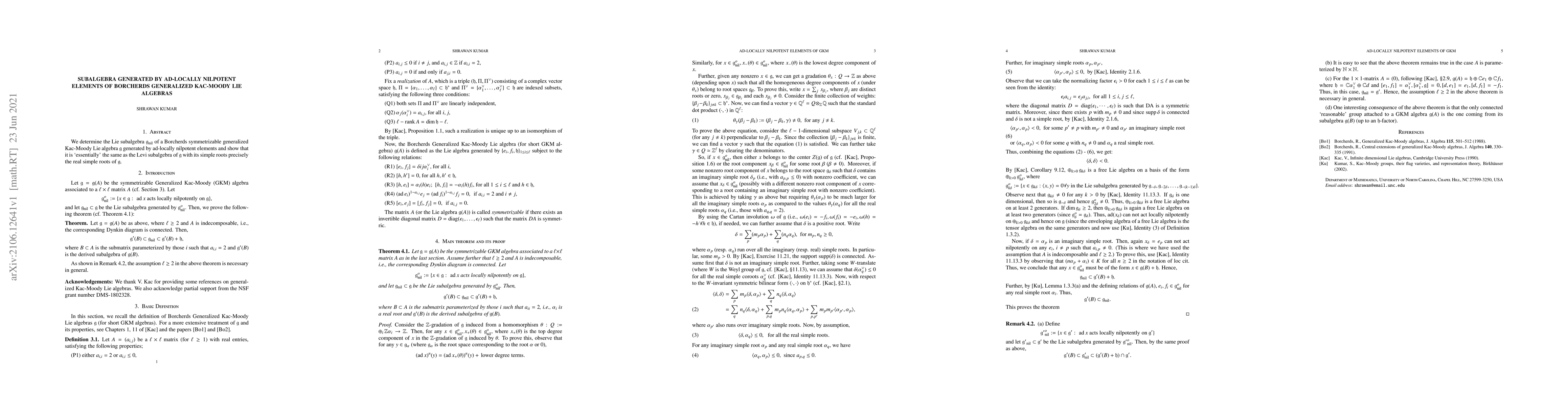 We determine the Lie subalgebra $\mathfrak{g}_{nil}$ of a Borcherds symmetrizable generalized Kac-Moody Lie algebra $\mathfrak{g}$ generated by $ad$-locally nilpotent elements and show that it is `essentially' the same as the Levi subalgebra of $\mathfrak{g}$ with its simple roots precisely the real simple roots of $\mathfrak{g}$.