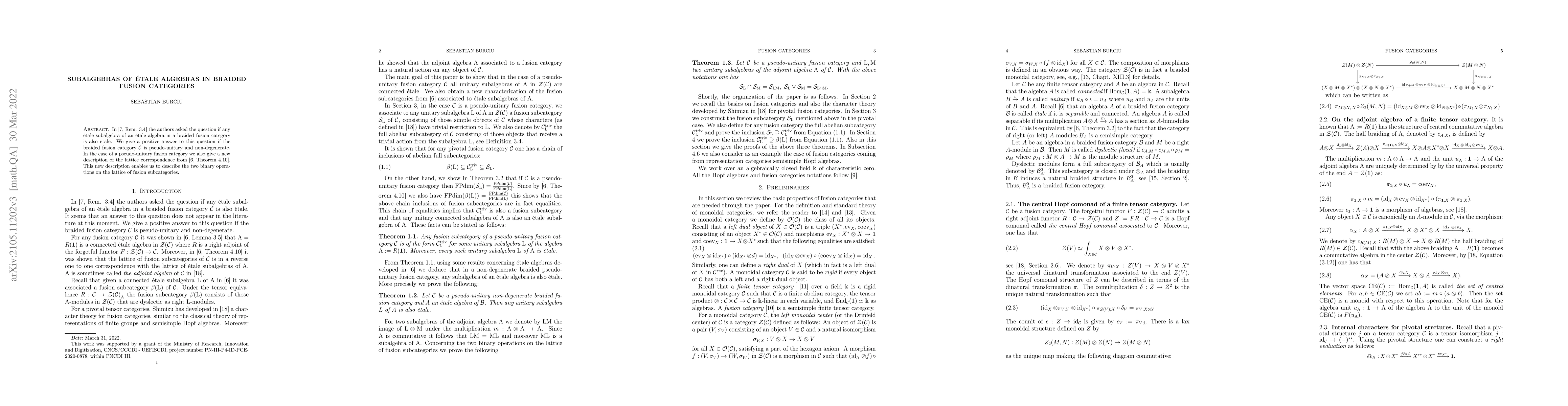 Researchers prove that subalgebras of etale algebras in pseudo-unitary braided fusion categories are also etale, providing new insights into the structure of these categories.