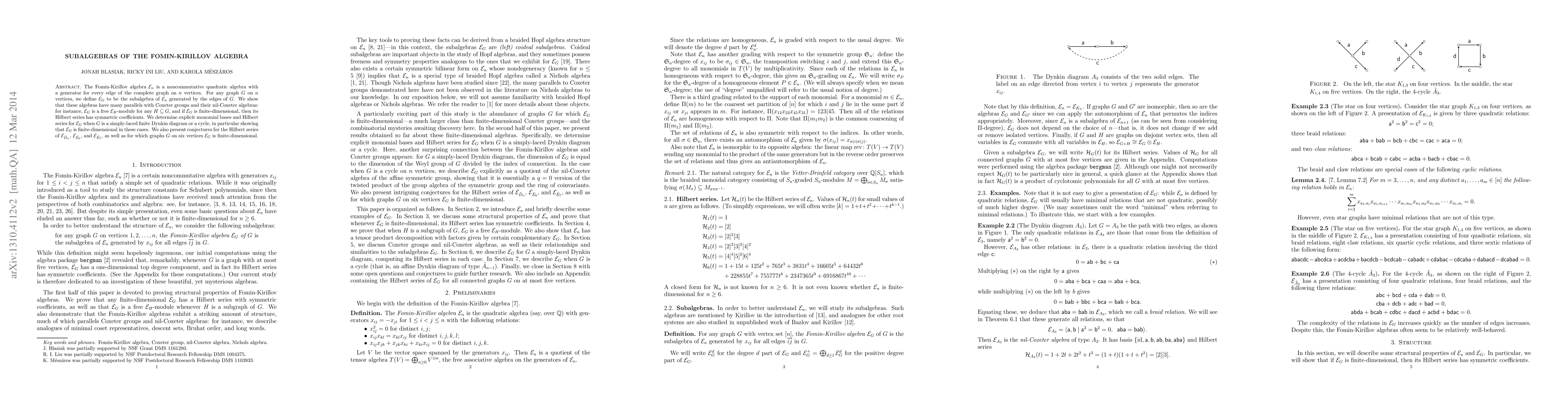 This paper explores subalgebras $\mathcal E_G$ of the Fomin-Kirillov algebra $\mathcal E_n$, showing they parallel Coxeter groups and their nil-Coxeter algebras. It determines explicit bases and Hilbert series for $\mathcal E_G$ when $G$ is a simply-laced Dynkin diagram or a cycle, proving finite-dimensionality in these cases.