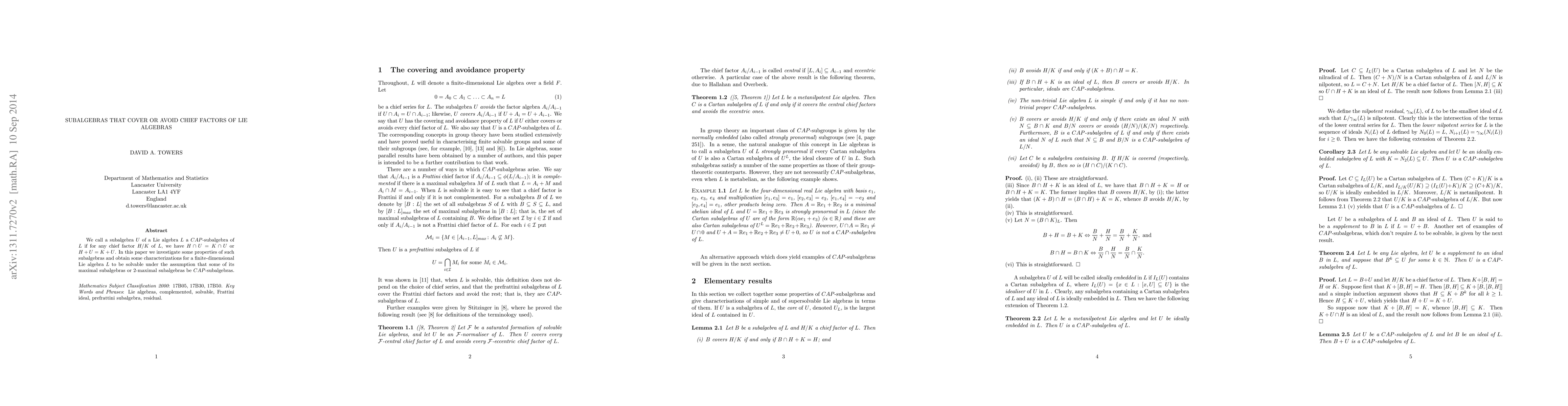 This paper investigates the properties of $CAP$-subalgebras in Lie algebras, which either cover or avoid chief factors, and characterizes conditions under which a finite-dimensional Lie algebra is solvable when certain maximal or $2$-maximal subalgebras are $CAP$-subalgebras.