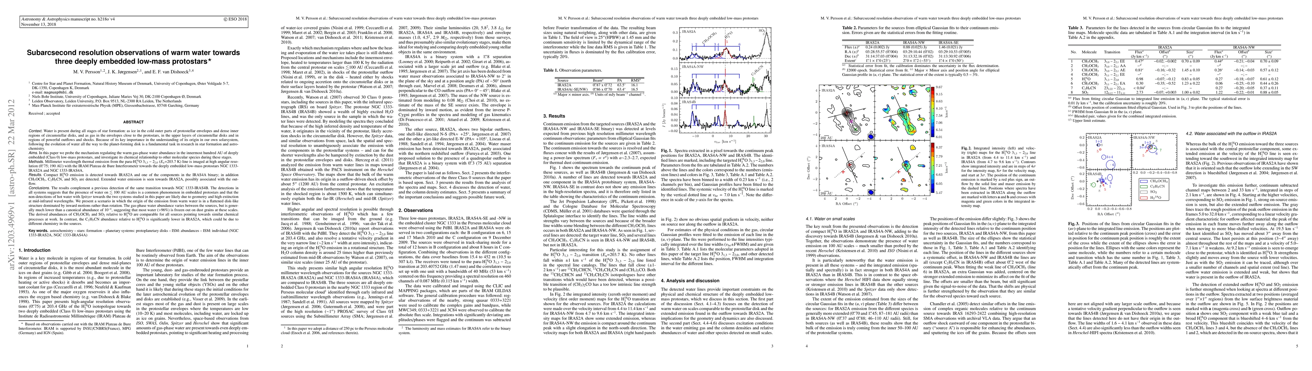 Water is present during all stages of star formation: as ice in the cold outer parts of protostellar envelopes and dense inner regions of circumstellar disks, and as gas in the envelopes close to the protostars, in the upper layers of circumstellar disks and in regions of powerful outflows and shocks. In this paper we probe the mechanism regulating the warm gas-phase water abundance in the innermost hundred AU of deeply embedded (Class~0) low-mass protostars, and investigate its chemical relationship to other molecular species during these stages. Millimeter wavelength thermal emission from the para-H2-18O 3(1,3)-2(2,0) (Eu=203.7 K) line is imaged at high angular resolution (0.75"; 190 AU) with the IRAM Plateau de Bure Interferometer towards the deeply embedded low-mass protostars NGC 1333-IRAS2A and NGC 1333-IRAS4A. Compact H2-18O emission is detected towards IRAS2A and one of the components in the IRAS4A binary; in addition CH3OCH3, C2H5CN, and SO2 are detected. Extended water emission is seen towards IRAS2A, possibly associated with the outflow. The detections in all systems suggests that the presence of water on <100 AU scales is a common phenomenon in embedded protostars. We present a scenario in which the origin of the emission from warm water is in a flattened disk-like structure dominated by inward motions rather than rotation. The gas-phase water abundance varies between the sources, but is generally much lower than a canonical abundance of 10^-4, suggesting that most water (>96 %) is frozen out on dust grains at these scales. The derived abundances of CH3OCH3 and SO2 relative to H2-18O are comparable for all sources pointing towards similar chemical processes at work. In contrast, the C2H5CN abundance relative to H2-18O is significantly lower in IRAS2A, which could be due to different chemistry in the sources.